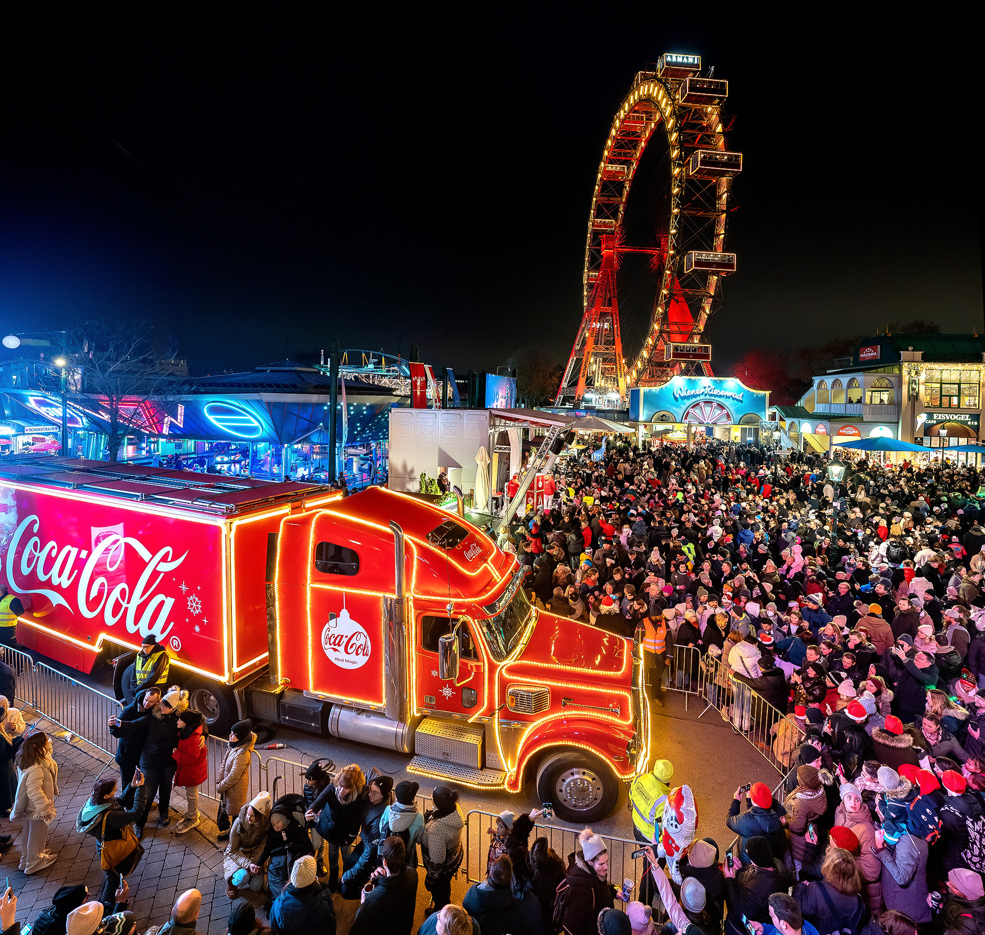Unter dem Motto "Der Prater rockt" öffnet der Wintermarkt am Riesenradplatz am 18. November wieder seine Pforten. Besucher erwartet ein vielfältiges Unterhaltungsprogramm, 37 kostenlose Live-Konzerte, tolle Prater-Attraktionen und Gaumenfreuden für jeden Geschmack. Auch der legendär beleuchtete Coca-Cola Weihnachtstruck mit dem Weihnachtsmann am Beifahrersitz stattet dem Wintermarkt einen Besuch ab.