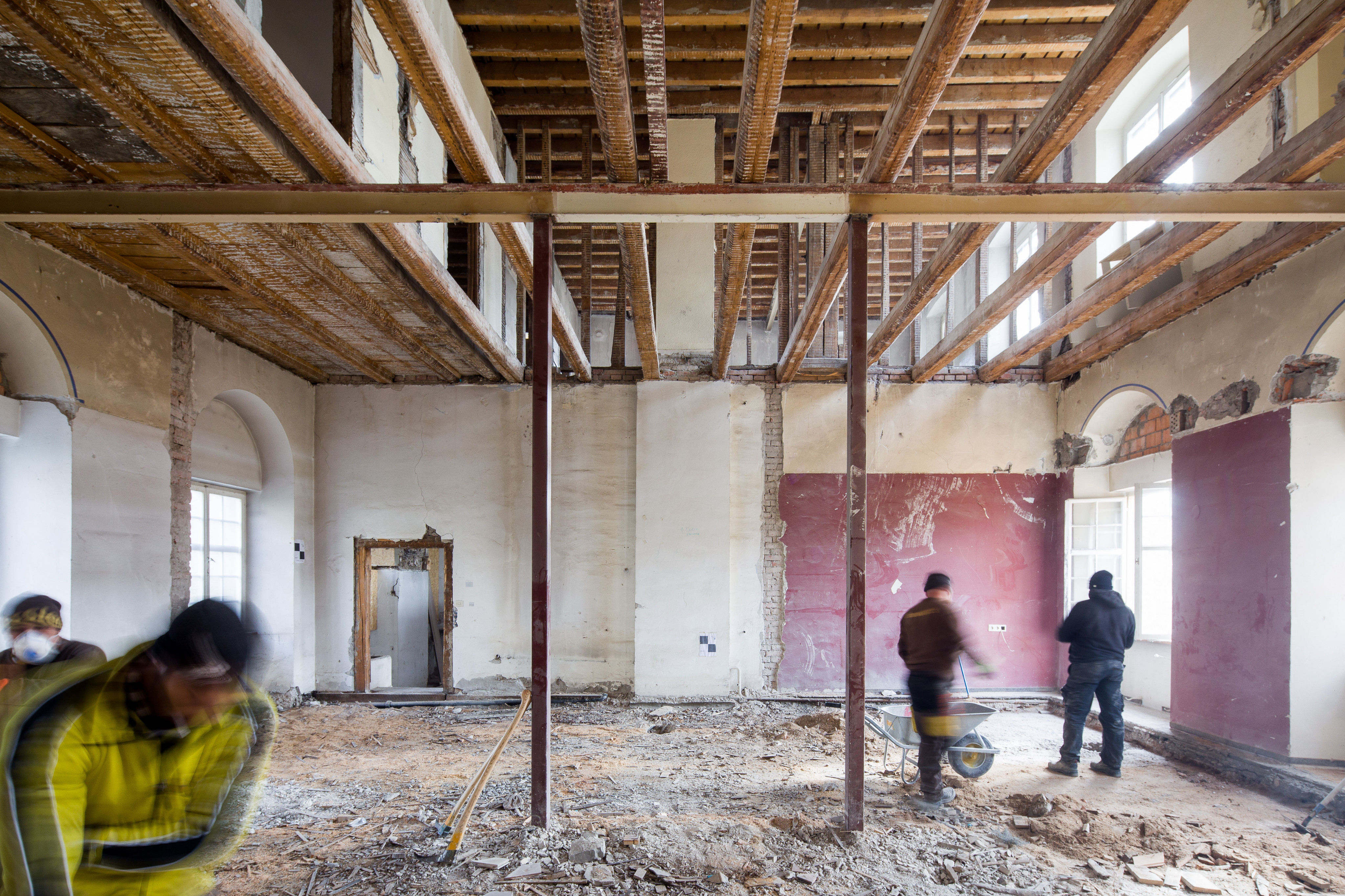 „Die Fenster samt Sandstein-Stöcken, die Türen und die Holzböden bleiben so weit wie möglich erhalten, nur völlig desolate Bauteile werden ersetzt. Dabei ist jedes Teil eine Sonderanfertigung“, erklärt Epp. Die ebenfalls in die Jahre gekommenen elektrischen Leitungen und Installationen werden komplett erneuert und auf den aktuellen Stand gebracht.
