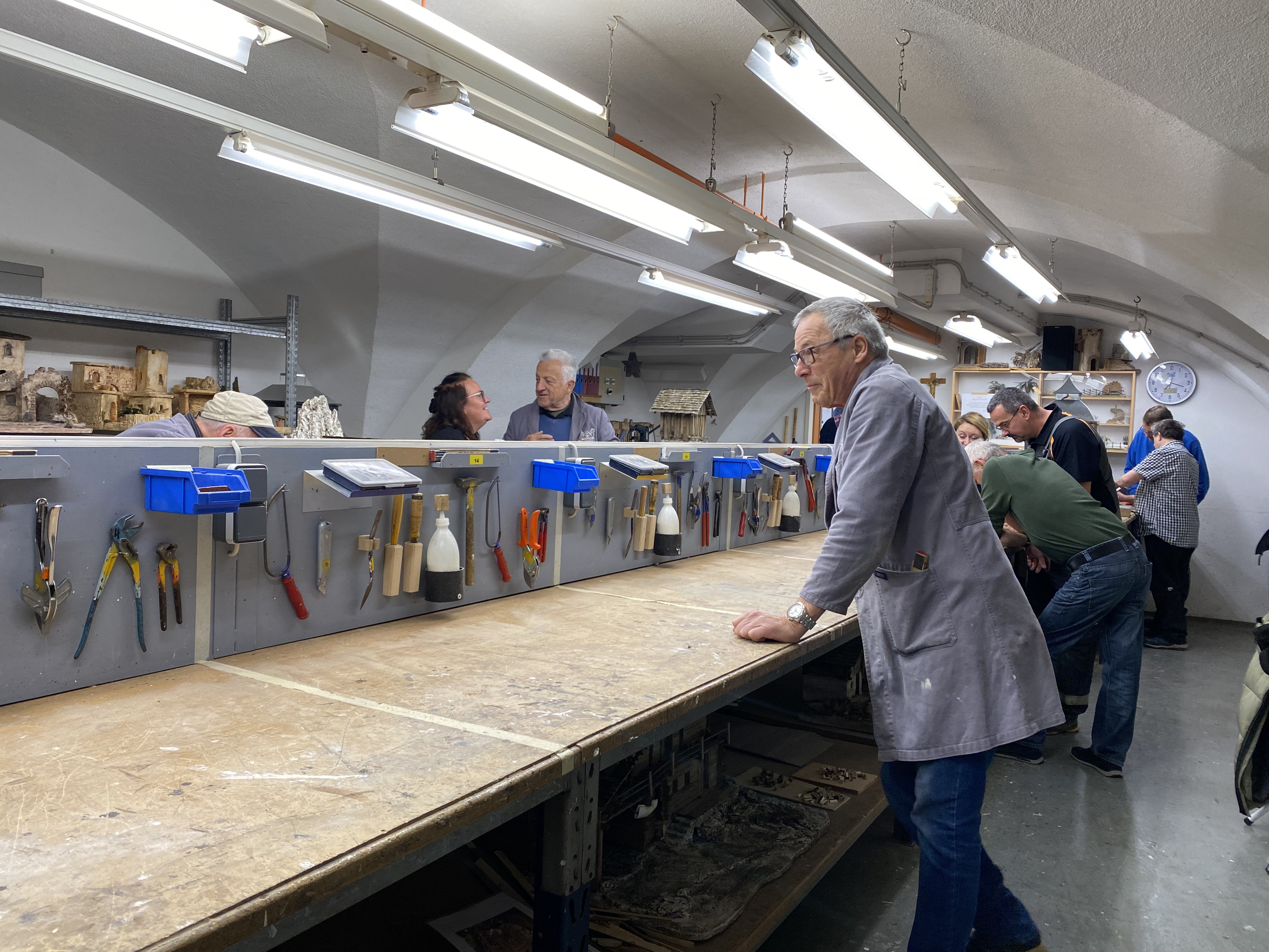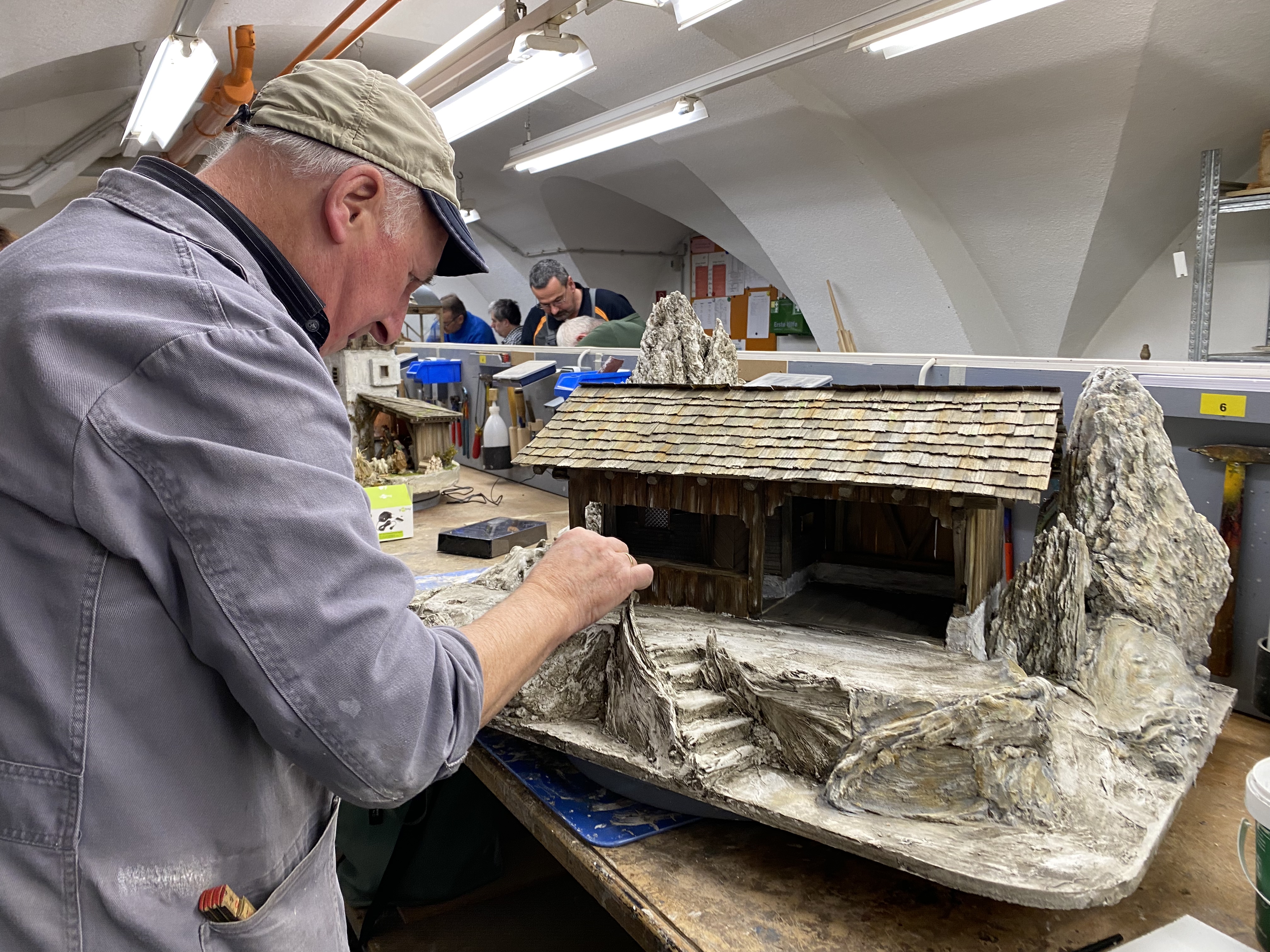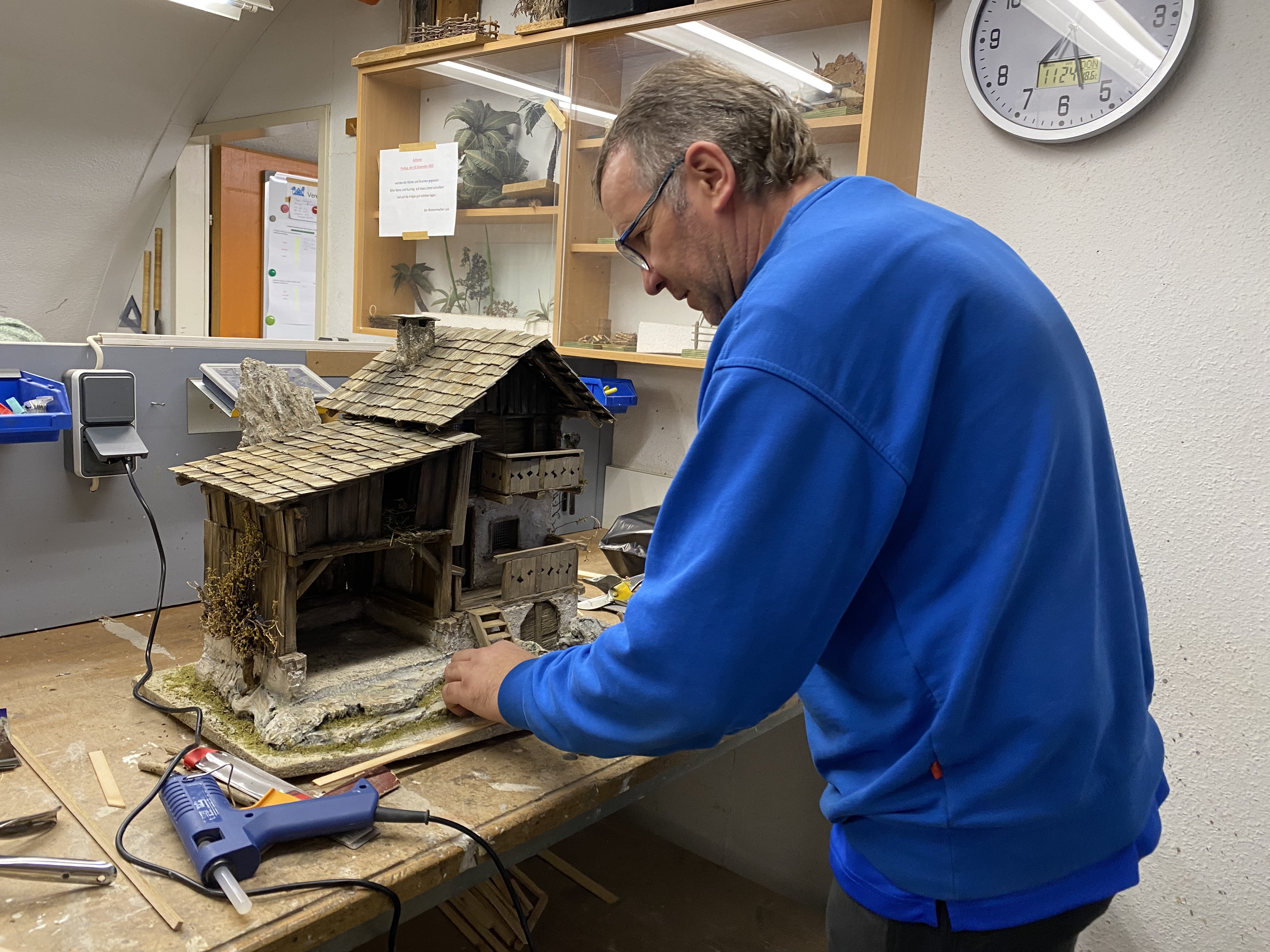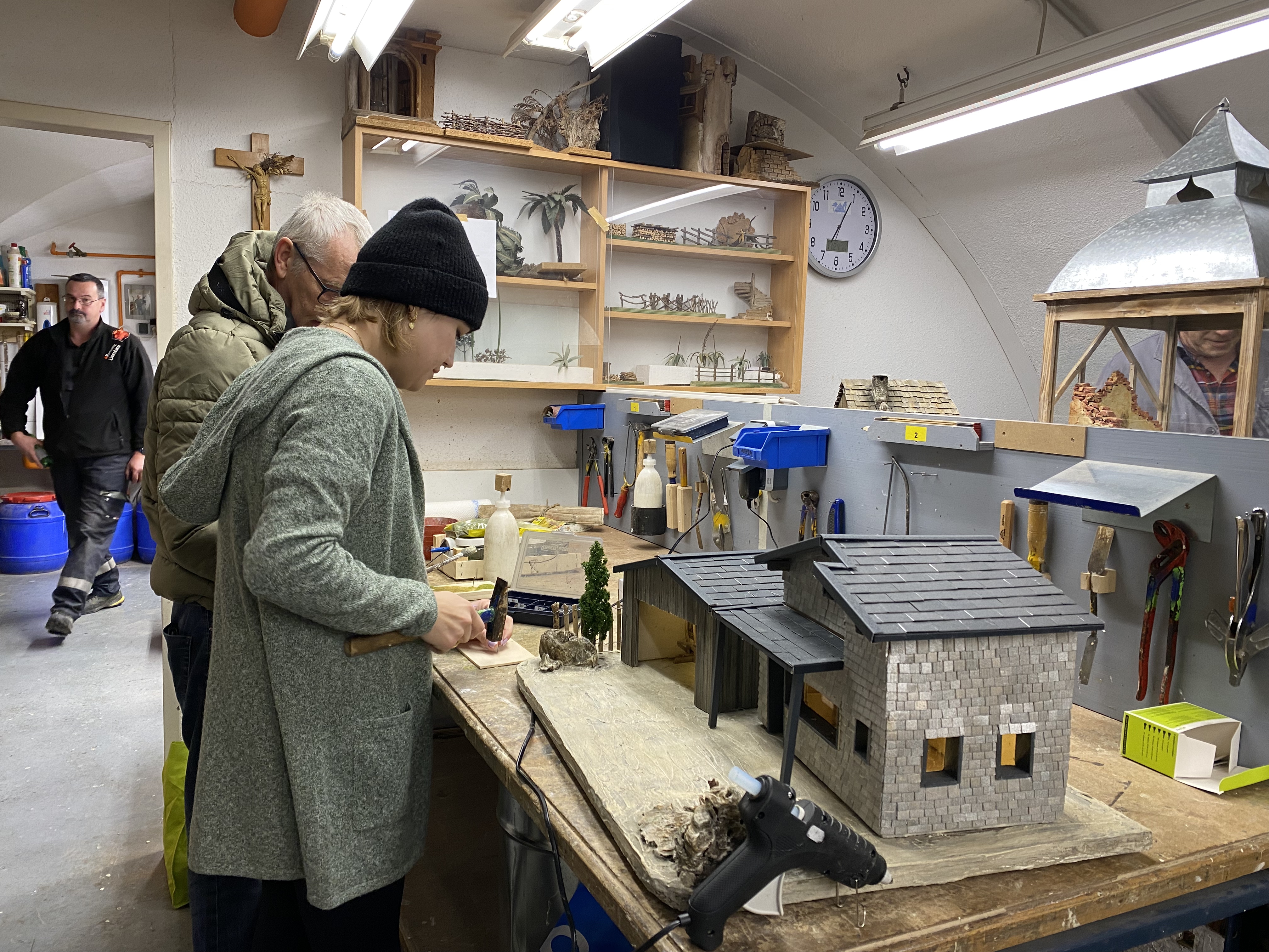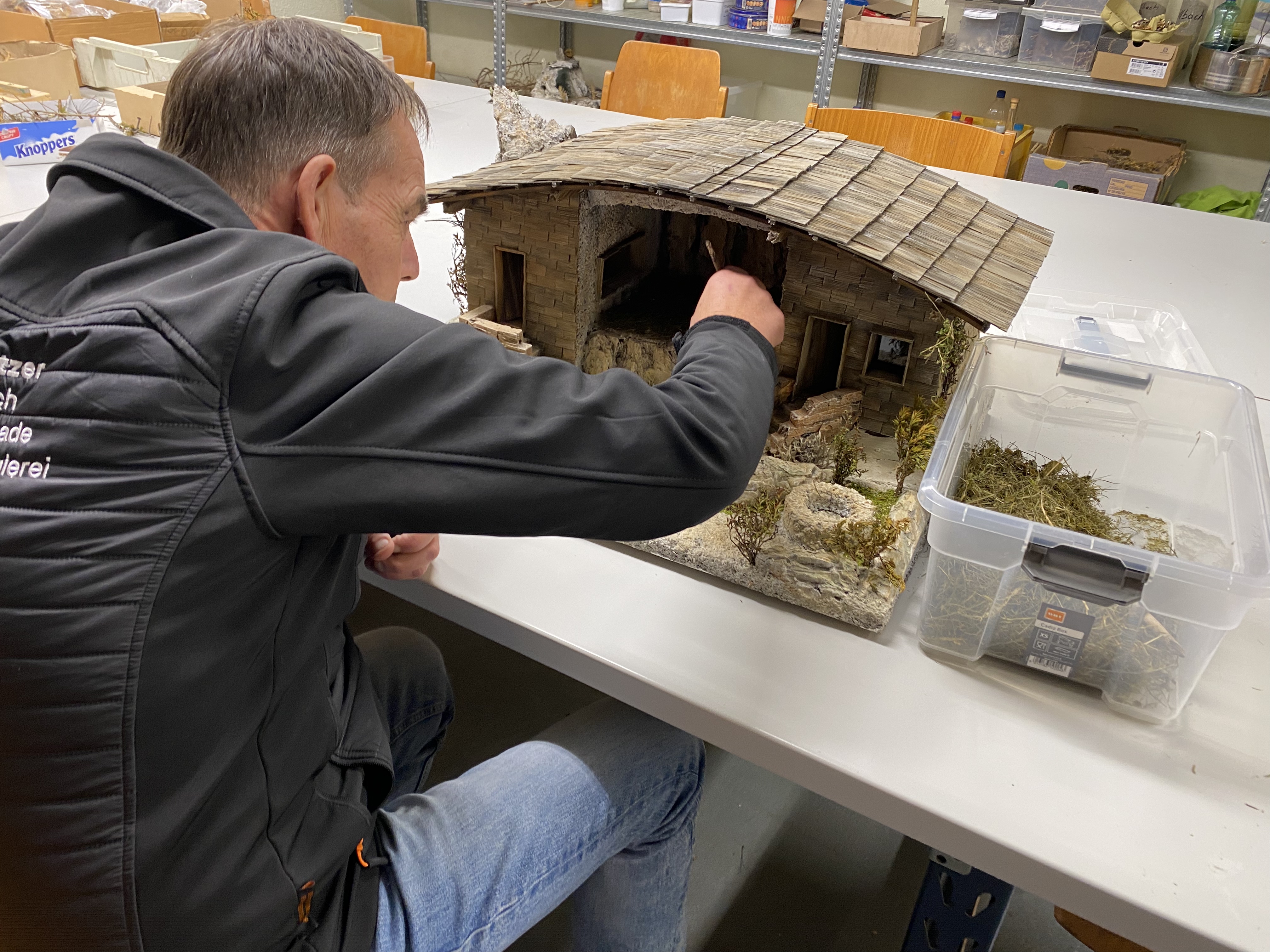 Im Krippenlokal in der Marktstraße laufen gerade letzte Arbeiten an den heurigen Krippen. Bald steht die Krippenausstellung an.