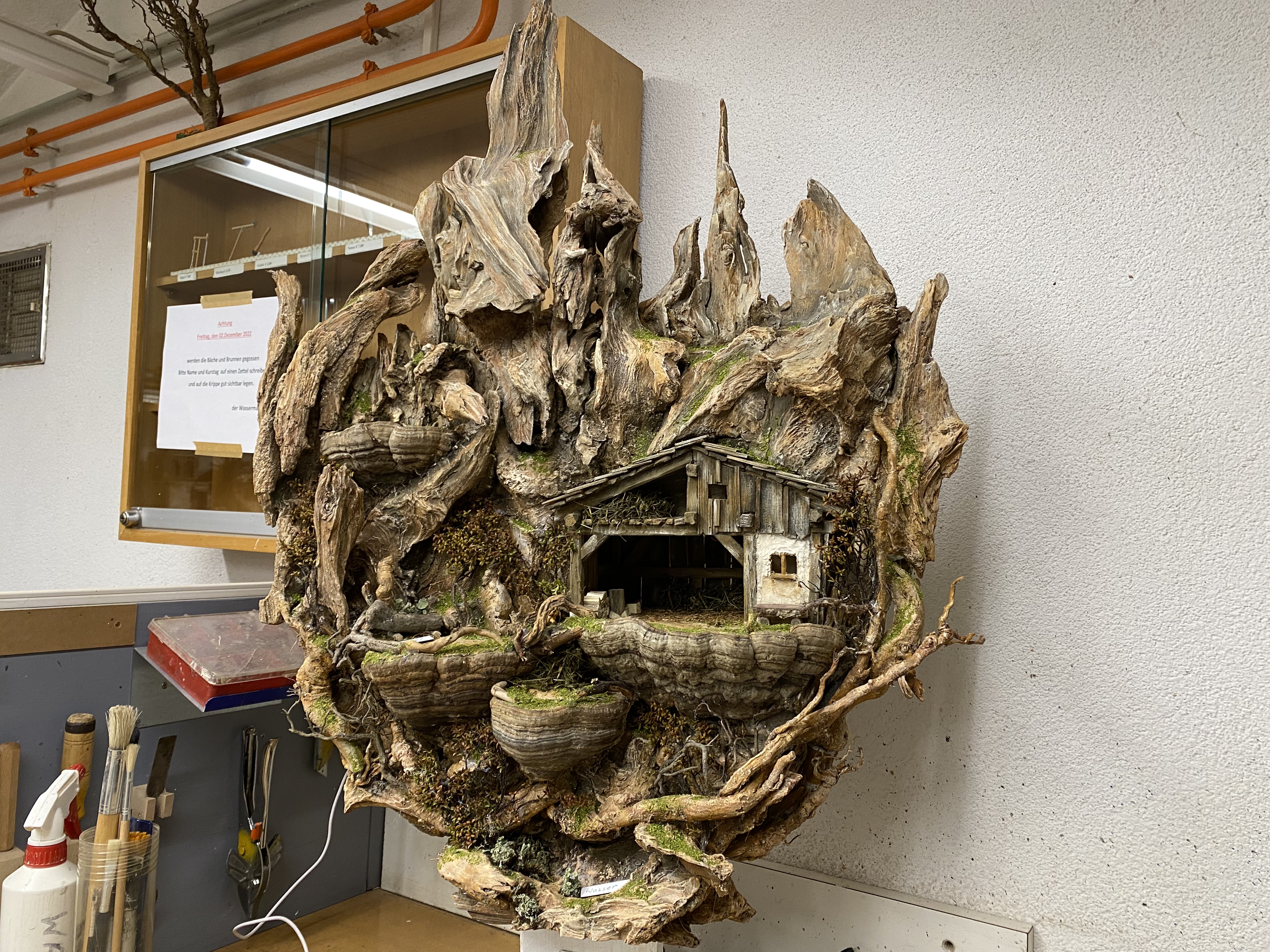 In der Werkstatt entstehen viele verschiedene Krippen, darunter etwa auch eine Wurzelkrippe. "Jede Krippe ist ein Unikat und das ist eben das Schöne am Krippenbau", verdeutlicht Rinderer. Auch modern und ausgefallen darf eine Krippe heute sein, wobei der Trend mehr alpenländisch als orientalisch ist.