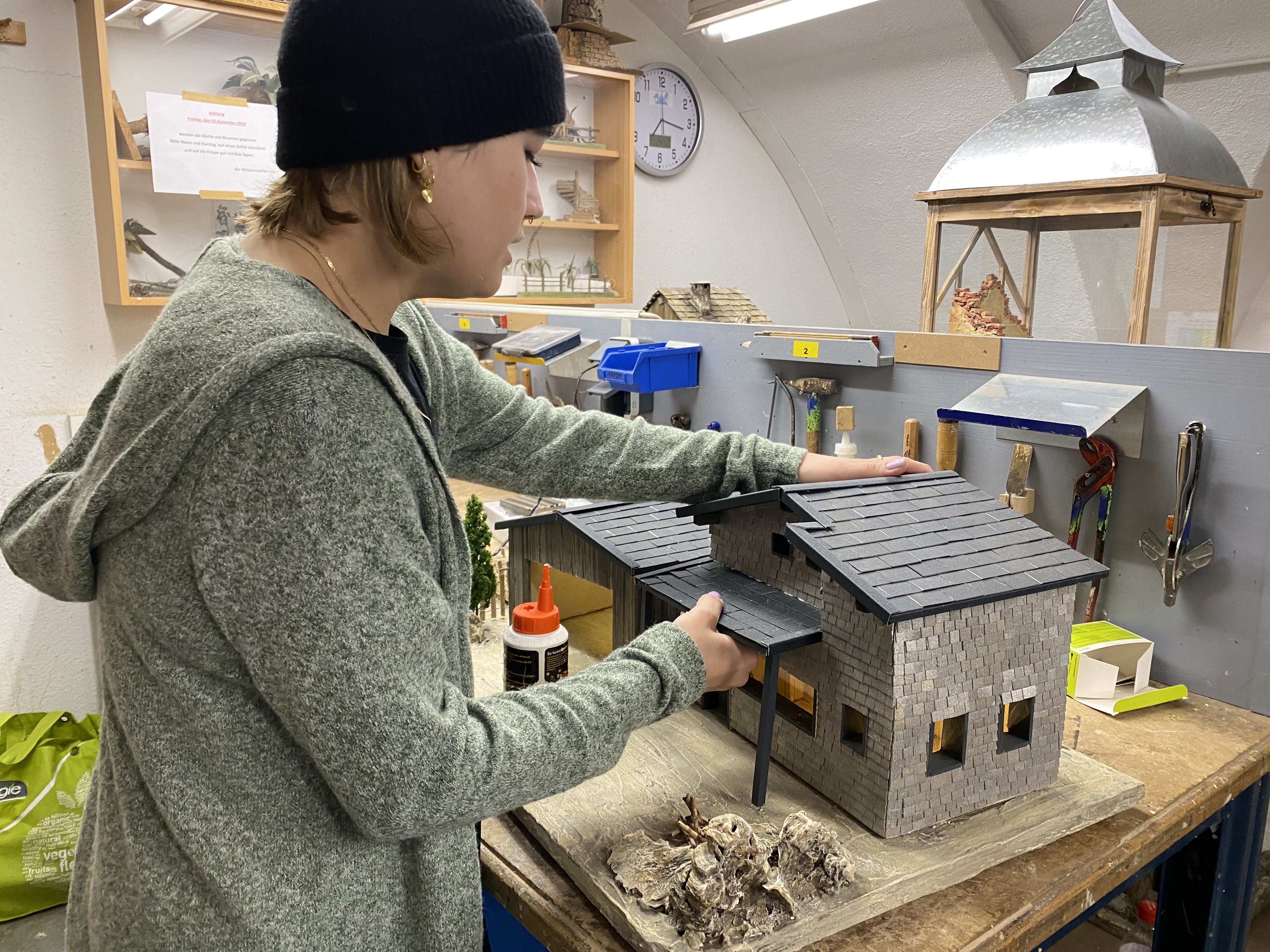 Michelle Kutzer (28) aus Dornbirn besucht heuer zum ersten Mal den Kurs. Es mache Spaß, erklärt sie gegenüber VOL.AT. Ihr Werkstück gleicht mehr einem Modellbau. "Ich habe da ein Modell von unserem Ferienhaus nachgebaut, das wir in Schetteregg haben", erklärt sie. Sie habe versucht, so originalgetreu, wie möglich zu arbeiten.