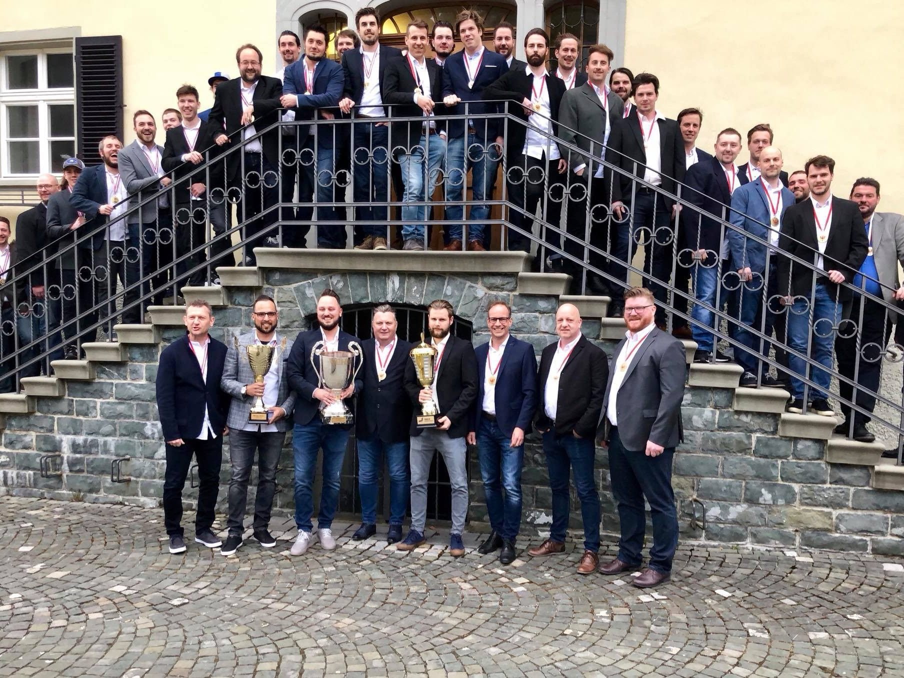 In der abgelaufenen Saison gelang dem Schlittschuhclub Hohenems das Kunststück mit beiden Kampfmannschaften den Meistertitel in der Eliteliga und in der VEHL-1 zu holen. Der Double-Sieger feiert nun im Rahmen der Champions-Night vor dem Rathaus und im Löwensaal mit den vielen Fans.