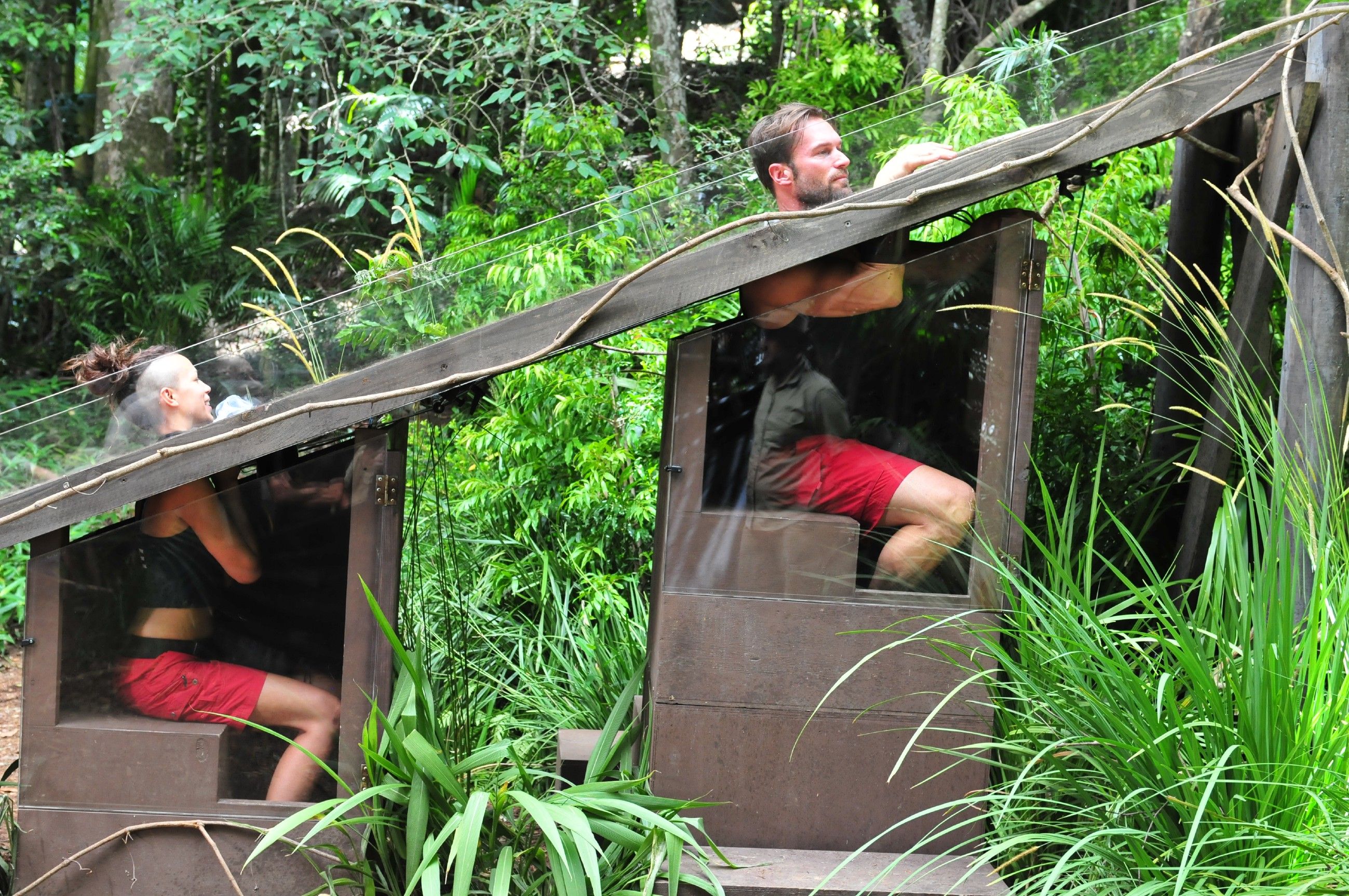 Plötzlich schreit Doreen laut auf. Die Schauspielerin ist im Schlaf aus ihrer Hängematte gefallen. Doreen: “Ich bin aus dem Bett gefallen.” Chris krümmt sich vor Lachen.