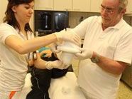 In der Skisaison sind es an vielen Tagen oft über 100 Patienten, sagts und schaut kurz zum Fenster hinaus: Schönes Winterwetter, harte Skipisten, schnelle Carvingskier da steigt die Zahl der verletzten Wintersportler. Ein Blick aus dem Gipszimmer auf den Flur genügt zur Bestätigung. Der Andrang ist groß, gleichsam wie auf der Strafbank sitzend wartet ein halbes Dutzend Verletzter wortlos auf Behandlung. Zwei andere werden indes schon ungeduldig. Wie lange dauert das denn noch?