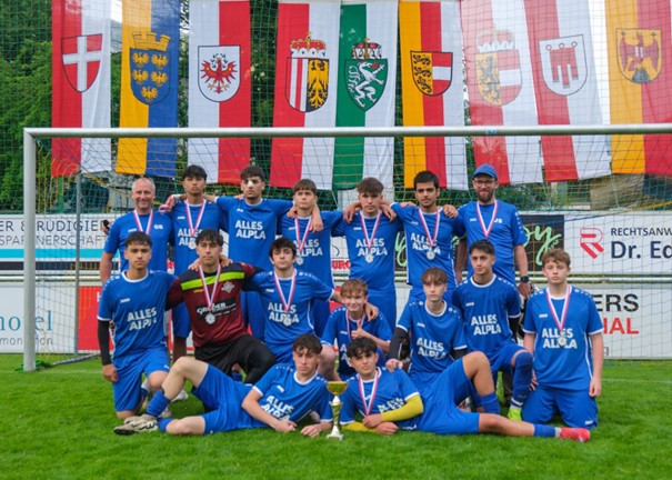 BM Fußball POLYCUP in Schruns 2. Rang PTS Bregenz mit Betreuern Gernot Brandstätter und Johannes Schobel