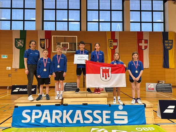 BM SCHUL OLYMPICS BADMINTON US 2. Rang SMS Bregenz-Schendlingen mit Betreuerin Christine Kerber