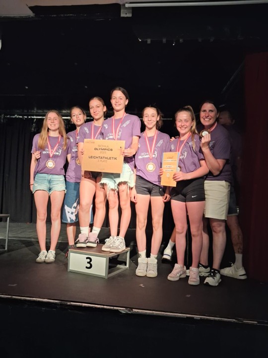 BM SCHUL OLYMPICS LEICHTATHLETIK Sportklassen Mädchen in Wien 3. Rang SMS Wolfurt mit Betreuerin Alexandra Vogel