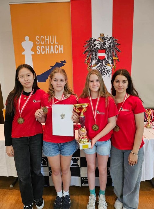 BUNDESFINALE SCHULSCHACH Mädchen in Wien 3. Rang MS Lustenau-Rheindorf (nicht auf dem Bild Betreuerin Julia Novkovic)