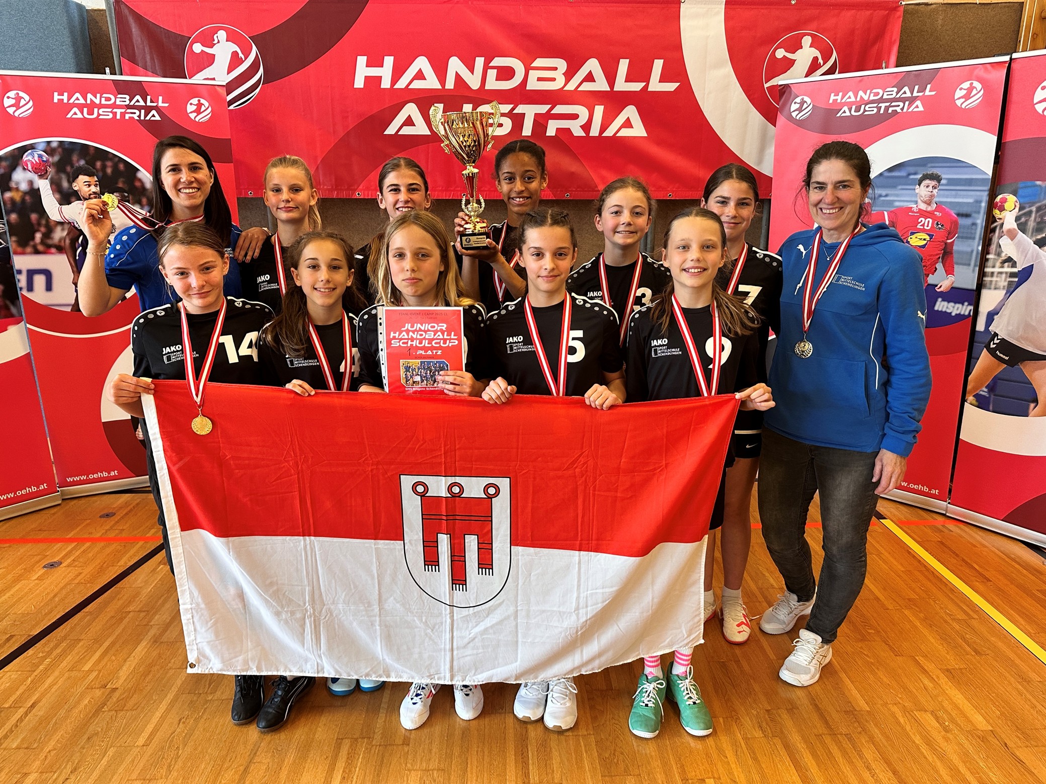 Internat. BODENSEE SCHULCUP in Lustenau HANDBALL Mädchen 2. Rang BG Bregenz-Blumenstraße (nicht auf dem Bild Betreuer Titus Stockinger)