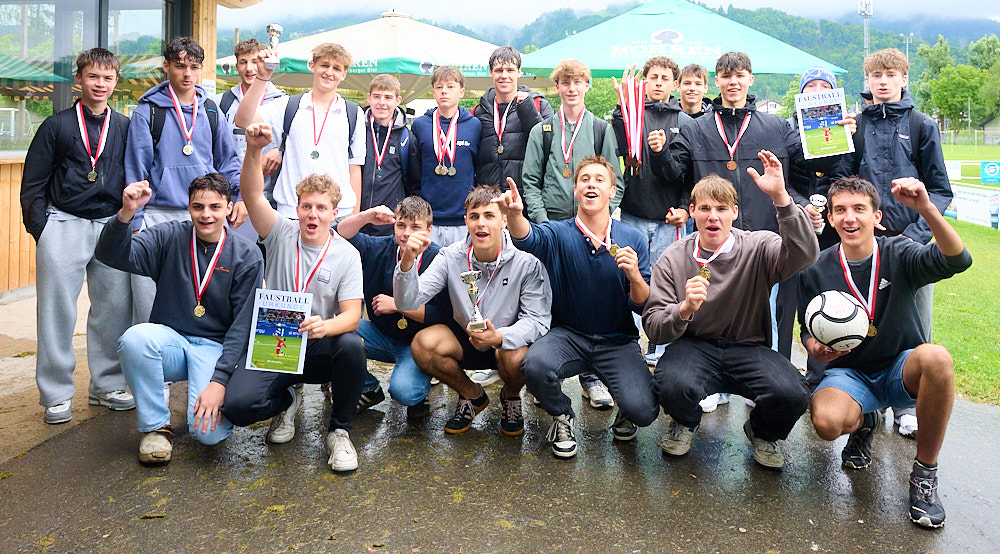 Internat. Bodensee Schulcup in Lustenau 2. Rang Collegium Bernardi PG Mehrerau mit Betreuer Markus Stockinger