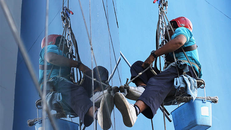 ©"Mitarbeiter Majer Gebäudereinigung bei Großbaustelle"