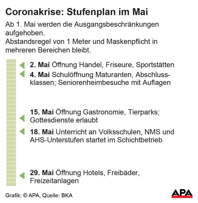 Mehr Frequenz für die Geschäfte wird es auch mit der Wiedereröffnung der Gastronomie Mitte Mai und der Hotellerie Ende Mai gegeben. Unklar ist, wann wieder Touristen aus dem Ausland nach Österreich kommen dürfen.