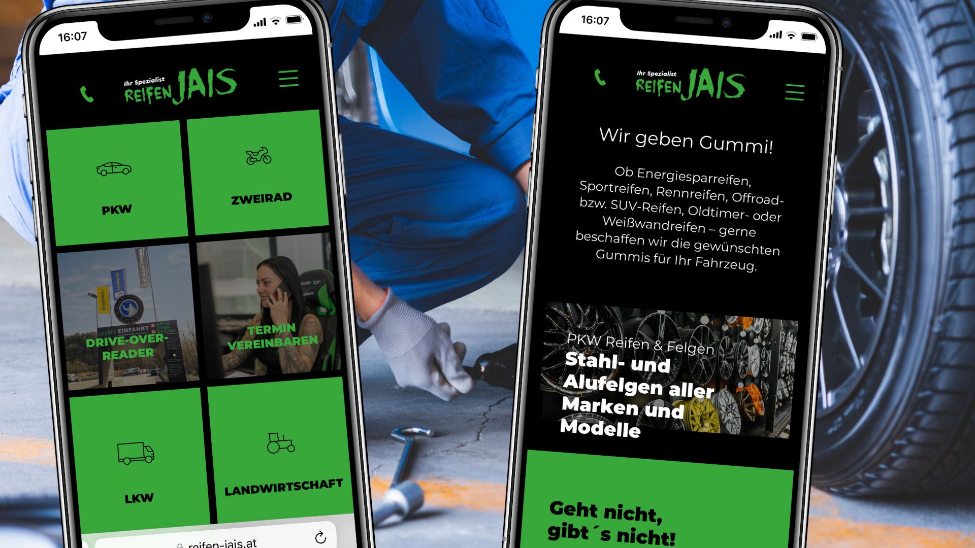 Bei Reifen Jais gibt es Reifen aller Art und Größe. ©Screenshots Reifen Jais (reifen-jais.at)/Canva (Symbolbild)