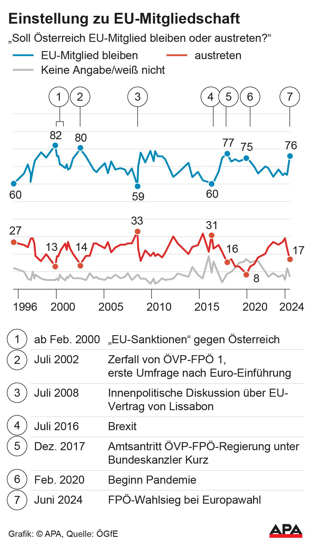 "Man muss festhalten, dass der Beitritt und die Jahre danach zu einem enormen Aufschwung in Österreich geführt haben. Da ist ein Modernisierungsschub zustande gekommen. Da ist die österreichische Wirtschaft wesentlich internationaler und exportorientierter geworden", zieht Fischler eine positive Bilanz der ersten Jahre, in denen die Zustimmung zur Europäischen Union in Österreich sehr hoch gewesen sei. Die Wende sei mit der Euro-Krise gekommen. "Es ist dann in der weiteren Folge, vor allem mit Corona, noch einmal verstärkt eine negative Stimmung entstanden. Auch der Beginn des Ukraine-Krieges hat einiges dazu beigetragen, dass die Stimmung sehr, sehr schlecht geworden ist. In der Zwischenzeit ist eine ganze Liste von fundamentalen Problemen dazugekommen. Vor 30 Jahren hat kaum ein Mensch vom Klimawandel geredet."