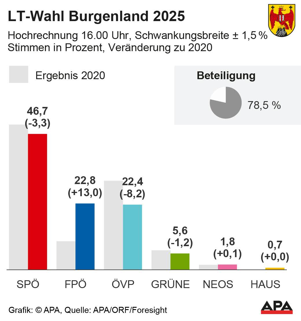 Erste Hochrechnung zur Landtagswahl Burgenland 2025