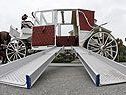 Mit dem Neuerwerb, der laut eigenen Angaben ein Jahr Bauzeit in Anspruch nahm, soll das nun anders werden: Mittels eigener, bis zu drei Metern ausfahrbarer Auffahrtsrampen ließen sich Rollstühle problemlos ins Wageninnere schieben, erklärte Kutscher Alfred Fraundorfer. Zudem sind beide Sitzbänke hochklappbar, wodurch bei Bedarf mehr Platz zur Verfügung steht. Außerdem wurden – anstatt der üblichen einen – zwei Stufen montiert, was den Ein- und Ausstieg auch für gehbehinderte Menschen erheblich erleichtere, hieß es.