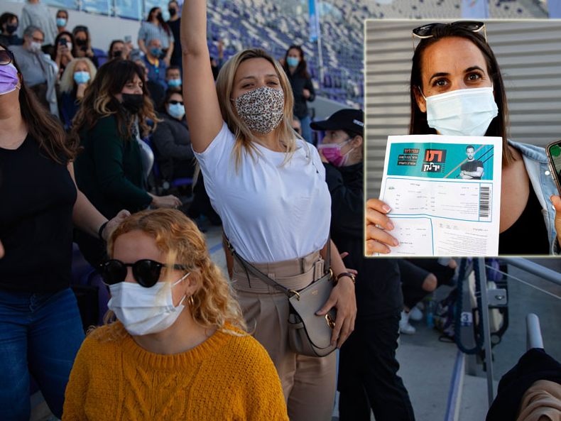 Rund 500 gegen Covid-19 geimpfte Menschen mit Masken kamen am Freitag in Tel Aviv in einem Stadion zusammen, das Platz für bis zu 30.000 Zuschauer bietet. Sie durften sich ein Konzert des israelischen Popsängers Ivri Lider anhören.