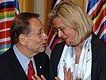 Ein weiteres Thema in Salzburg ist der Nahe Osten. Die EU-Außenminister prüfen weitere Finanzierungsmöglichkeiten für die Palästinenser angesichts der bevorstehenden Regierungsbeteiligung der radikal-islamischen Hamas. Wir sind bereit, ein zuverlässiger Partner zu bleiben. Es werde aber kein Geld an die neue Regierung fließen, sofern sie nicht Frieden mit friedlichen Mitteln suche, so Ferrero-Waldner. Die EU erwarte, dass die palästinensische Regierung Israel anerkenne und die Einhaltung des bisherigen Friedensplanes (Roadmap) garantiere.