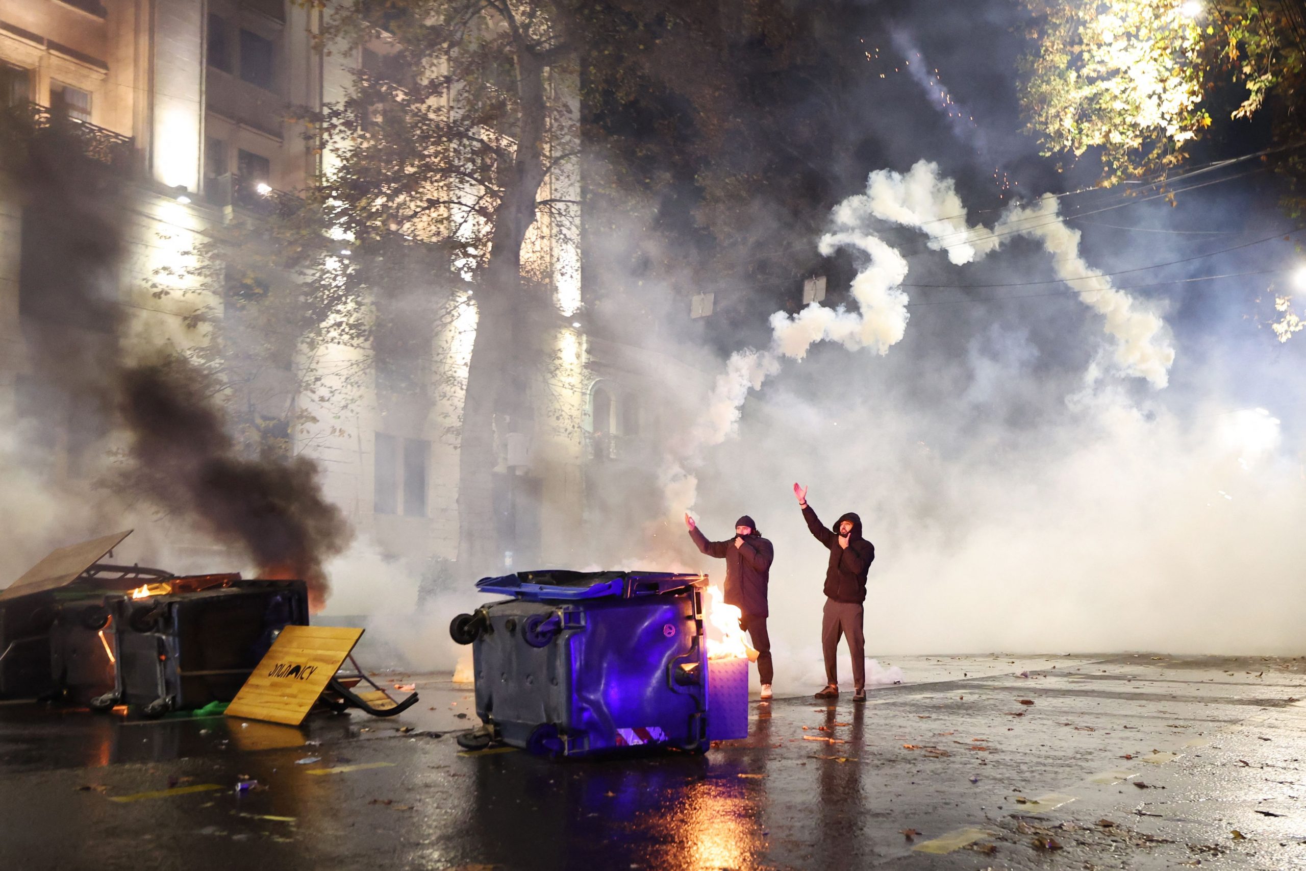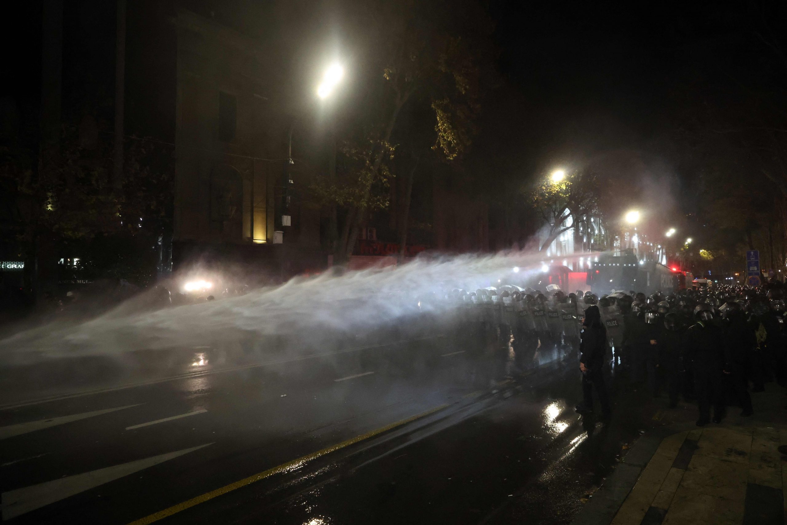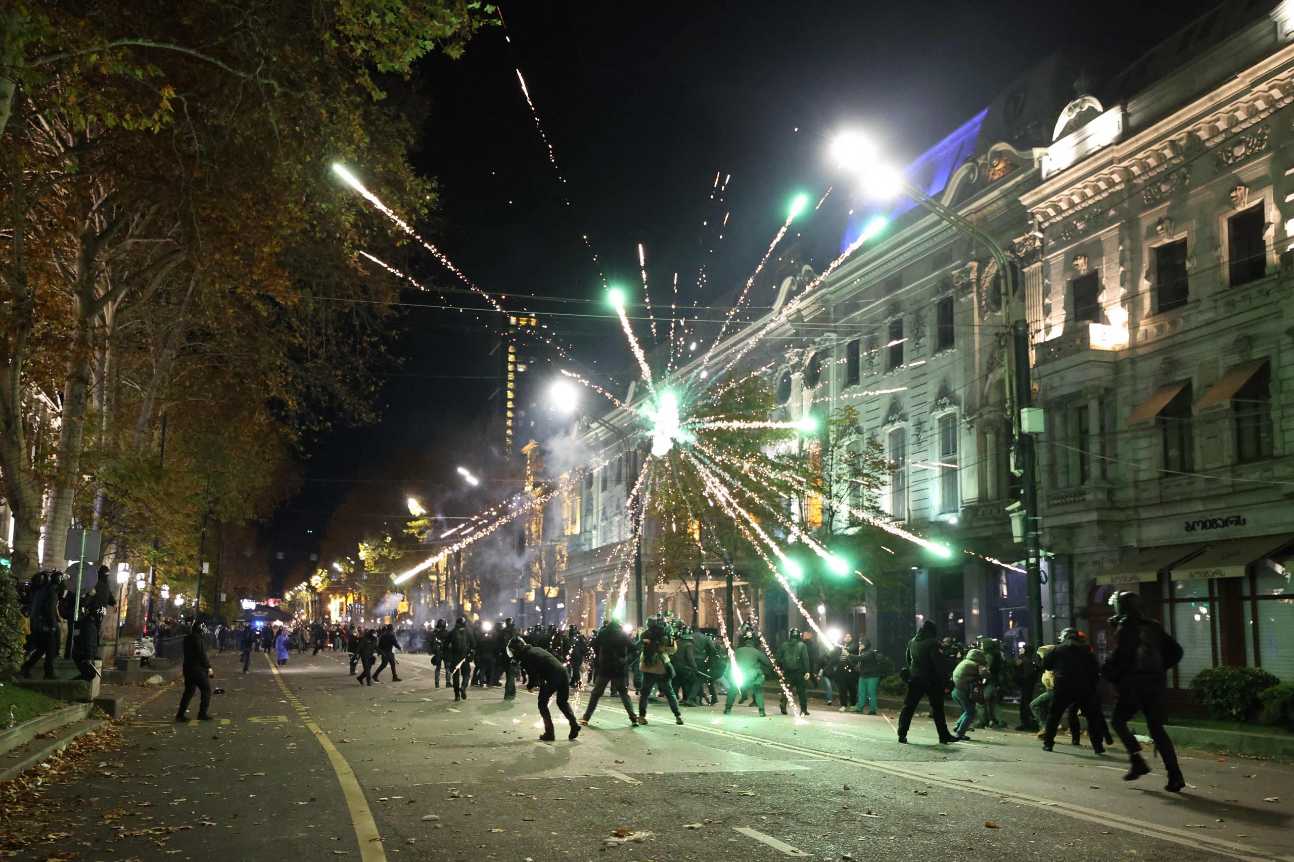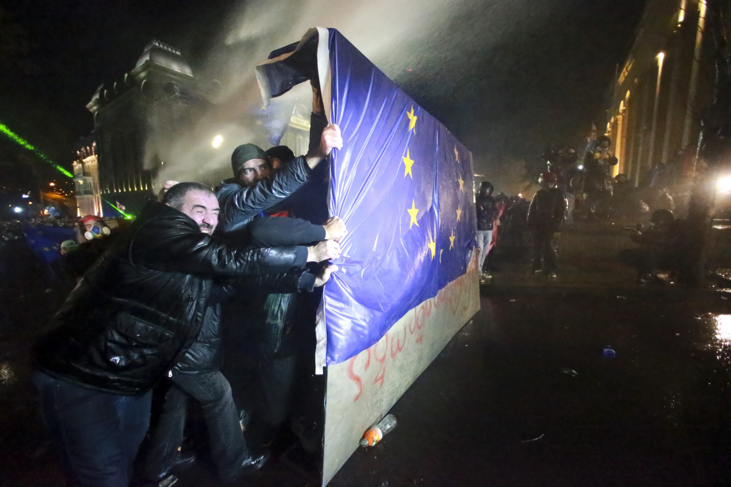 Am Donnerstagabend hatten zahlreiche Menschen in mehreren Städten Georgiens gegen die Entscheidung der Regierung, hinter der der Gründer von Georgischer Traum, der Ex-Premier und Milliardär Bidsina Iwanischwili steht, protestiert. Konkret geht es um die von Regierungschef Irakli Kobachidse angekündigte Verzögerung des geplanten EU-Beitritts des Landes. Die Polizei setzte Wasserwerfer, Pfefferspray und Tränengas gegen Demonstranten ein. Lokalen Medien zufolge wurden mehrere Demonstranten und Journalisten verhaftet.