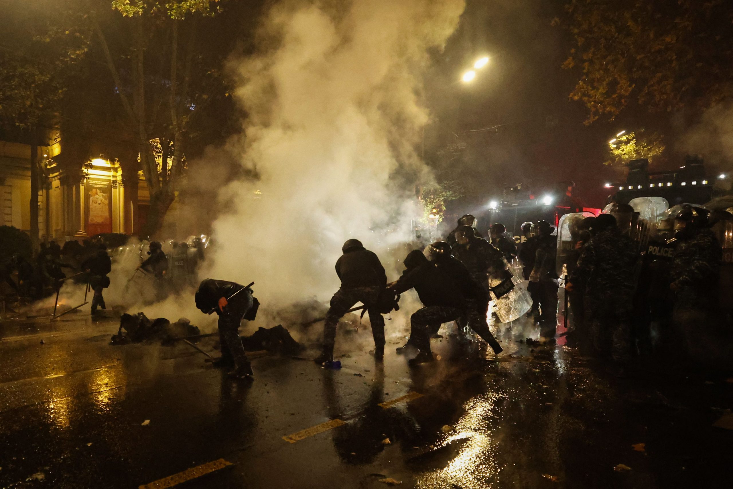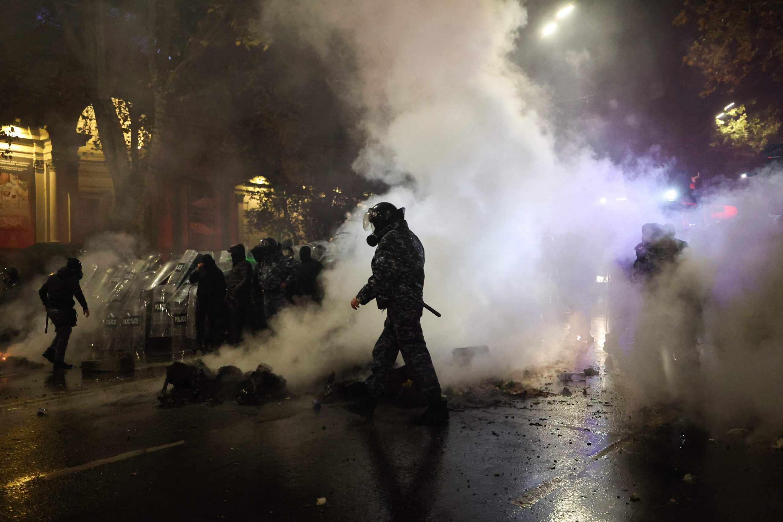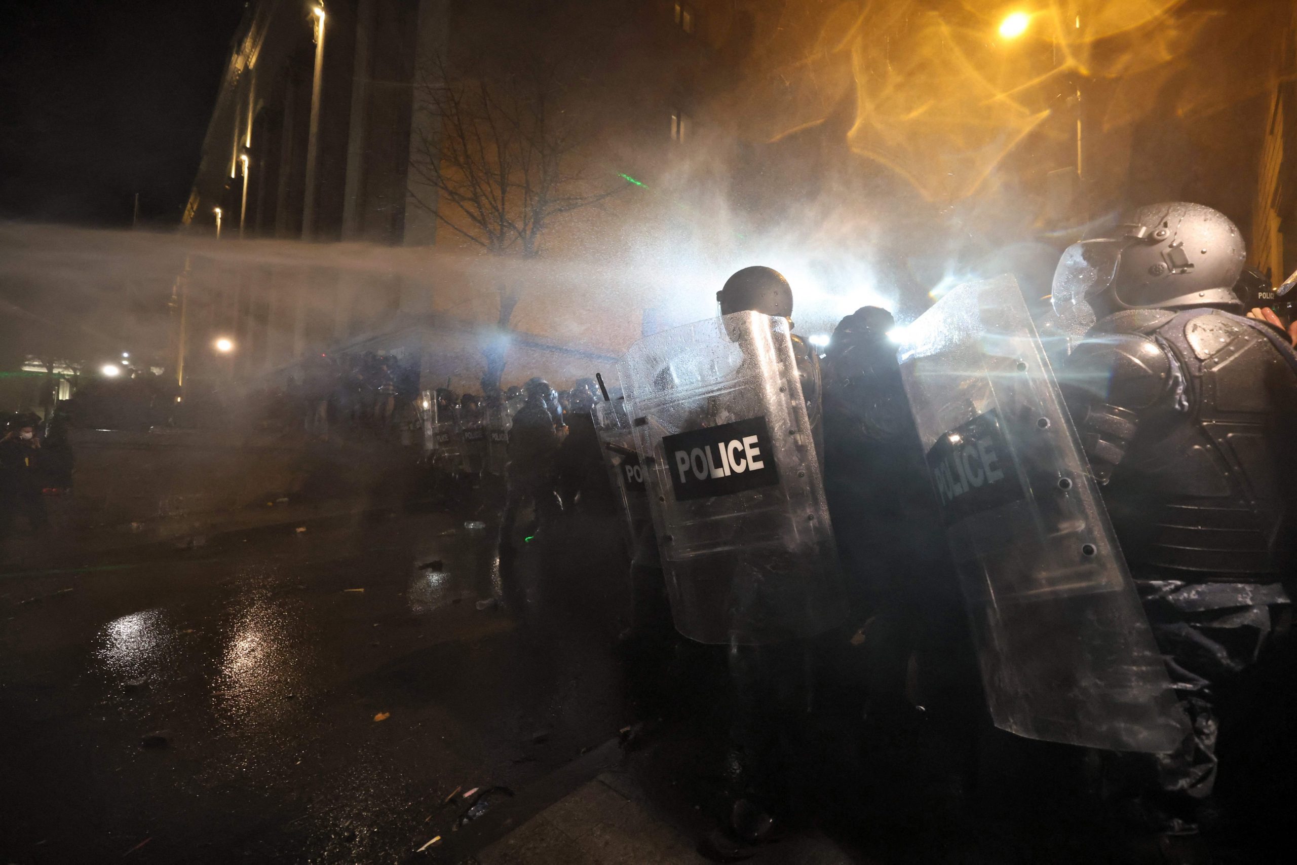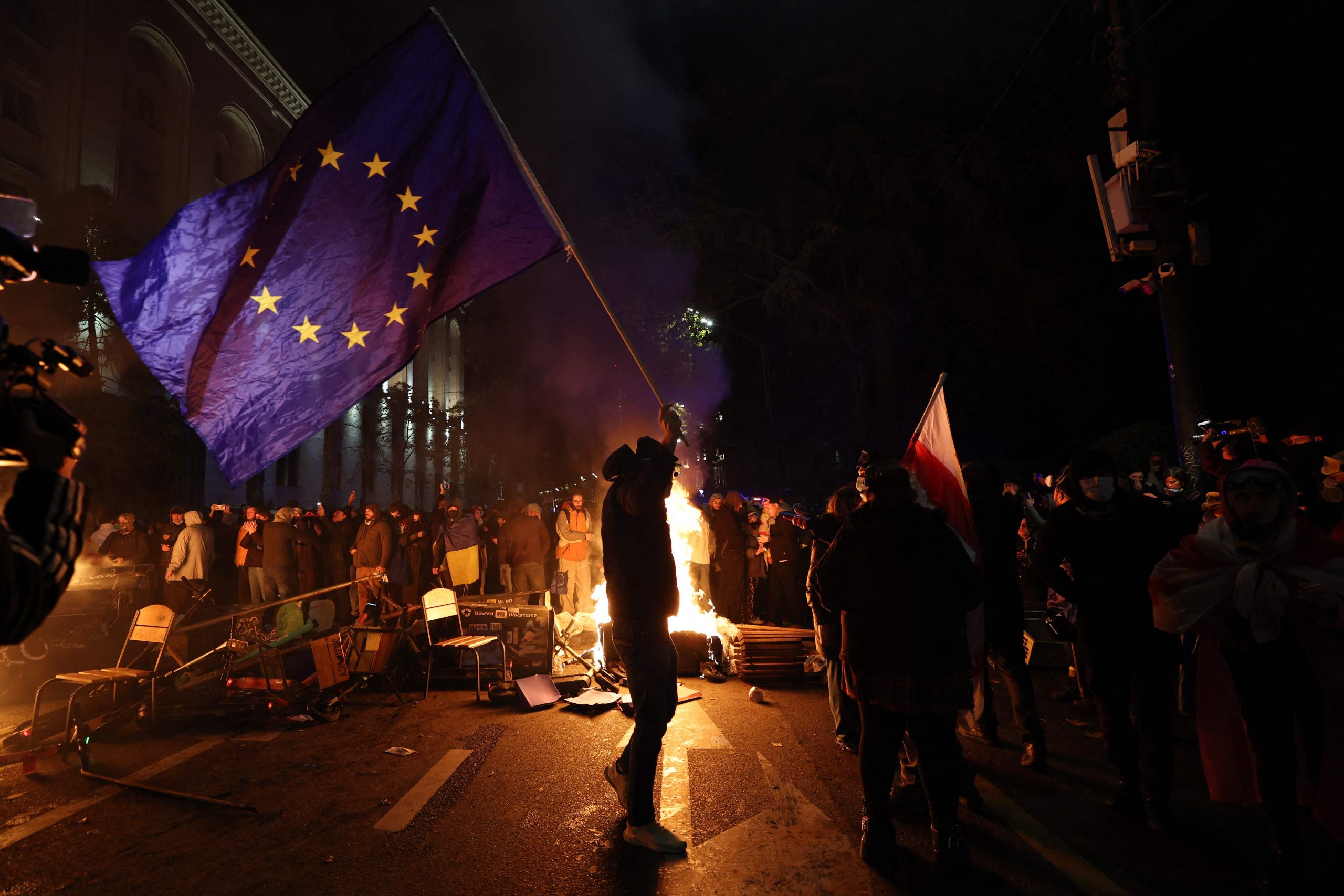 Am Donnerstagabend hatten zahlreiche Menschen in mehreren Städten Georgiens gegen die Entscheidung der Regierung, hinter der der Gründer von Georgischer Traum, der Ex-Premier und Milliardär Bidsina Iwanischwili steht, protestiert. Konkret geht es um die von Regierungschef Irakli Kobachidse angekündigte Verzögerung des geplanten EU-Beitritts des Landes. Die Polizei setzte Wasserwerfer, Pfefferspray und Tränengas gegen Demonstranten ein. Lokalen Medien zufolge wurden mehrere Demonstranten und Journalisten verhaftet.