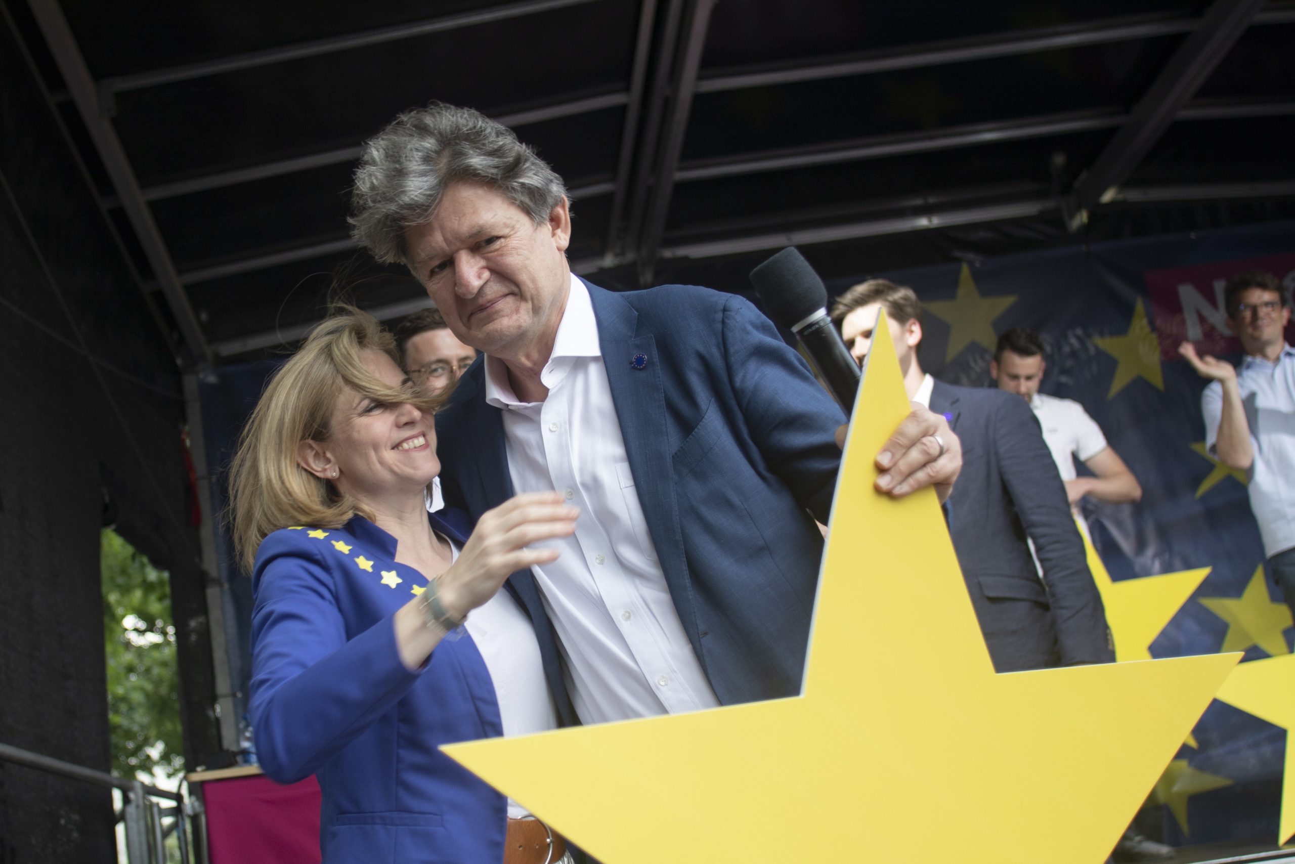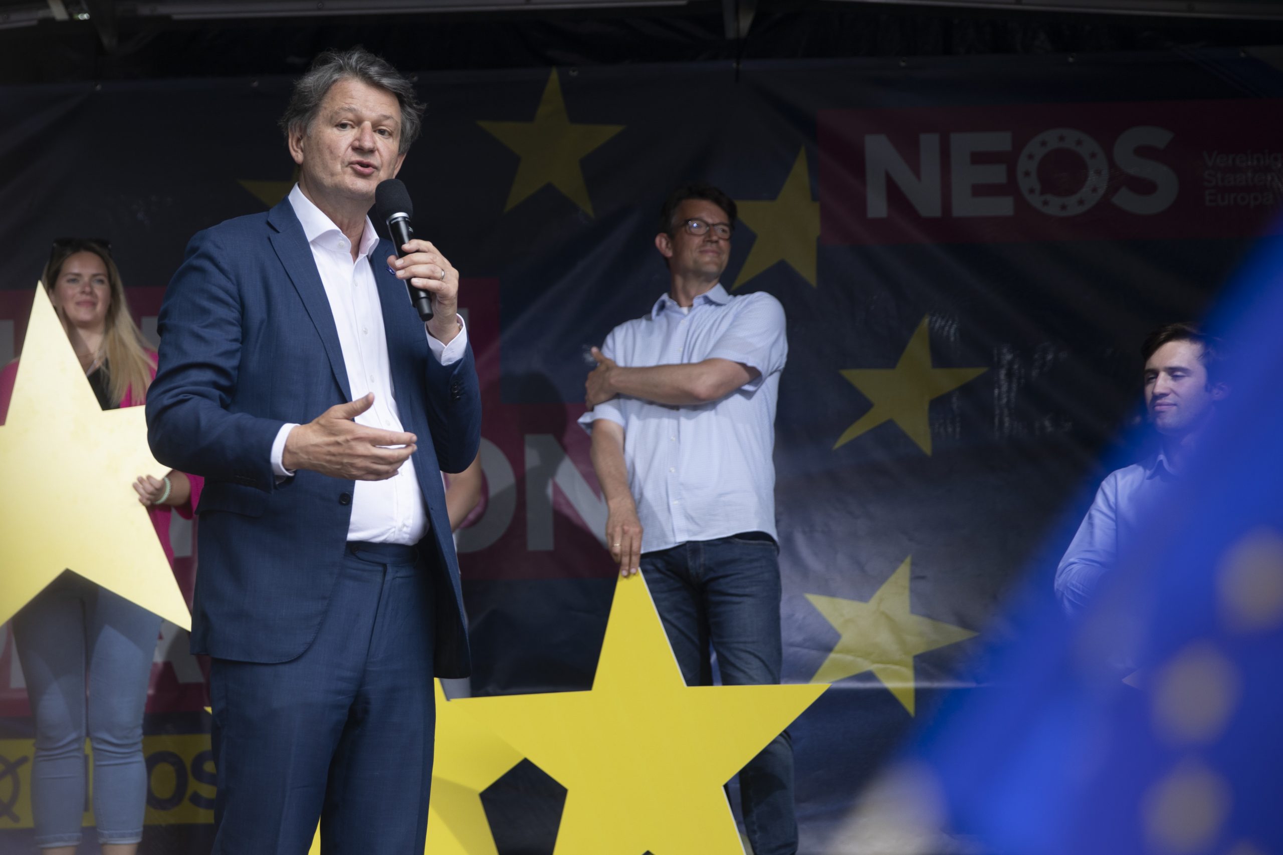Vor EU-Fahnen-schwingenden Wahlwerbern und mit Europahymne im Hintergrund gaben sich Spitzenkandidat Helmut Brandstätter und Parteichefin Beate Meinl-Reisinger am Freitag siegessicher: "Wir werden am Sonntag zu den ganz großen Gewinnern gehören", rief Meinl-Reisinger den pinken Unterstützern zu.