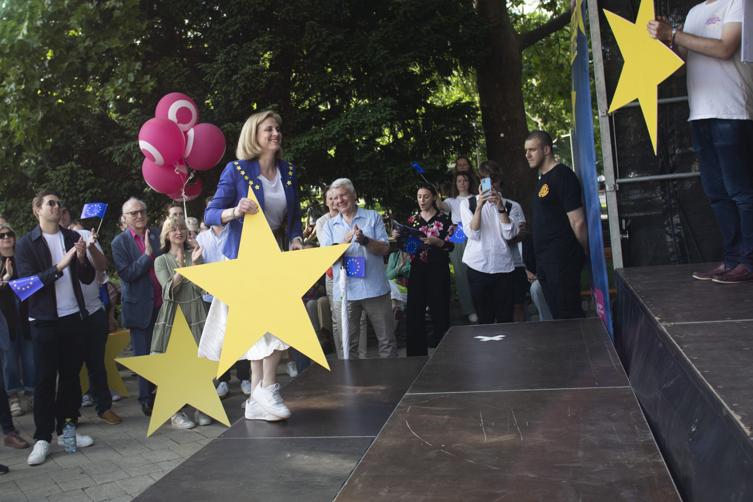 Abschließend wurde noch die Listenzweite Anna Stürgkh auf die Bühne geholt, der es bei der Wahl um die "Energieunion" und den Ausstieg aus russischem Gas geht. "Wir dürfen unser Europa nicht von den Rechtsextremen und den Linksextremen zerstören lassen, und werden Putin die Stirn bieten."