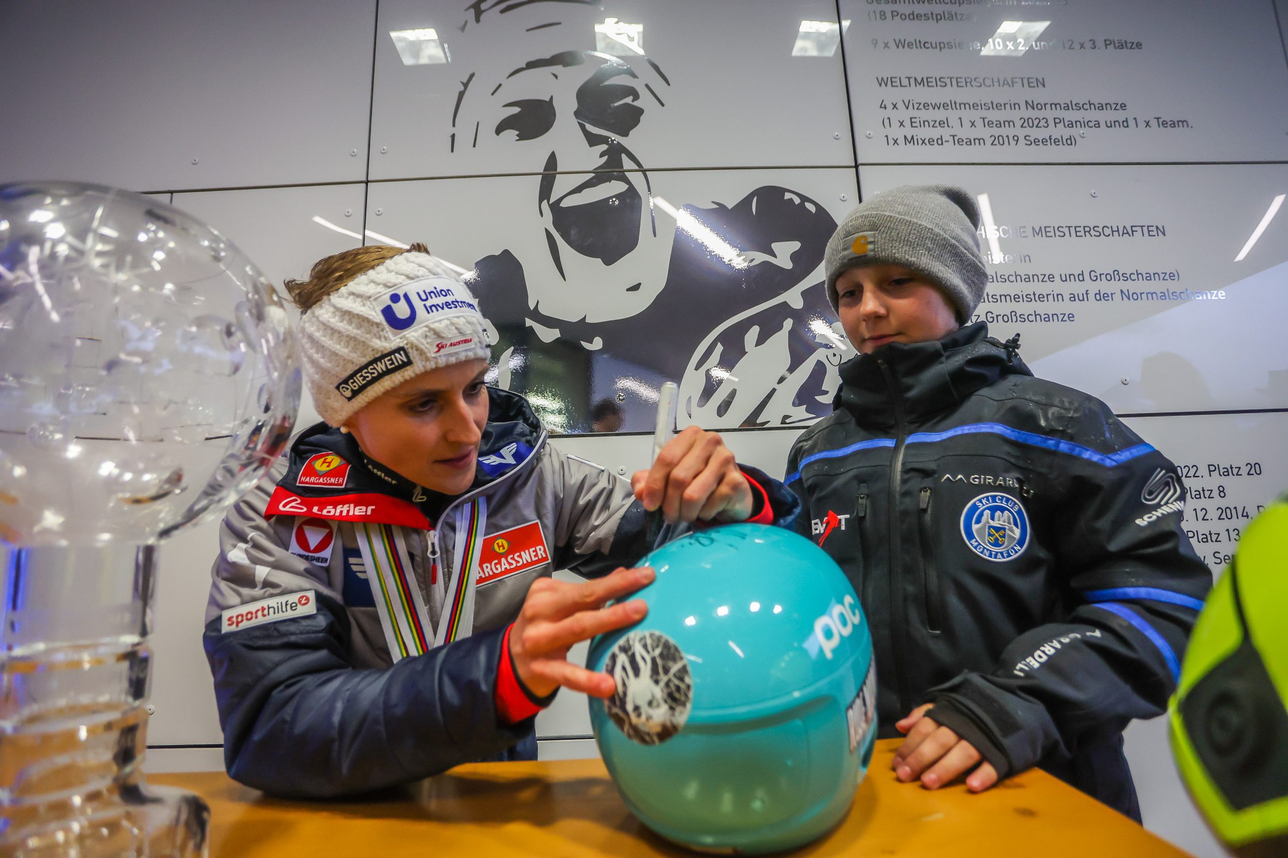Ihr Verein ist der SK Kehlegg und als Heeressportlerin konnte sie ihren Traum zum Beruf machen. Mit 159 Zentimetern Körpergröße und einer persönlichen Bestweite von 197,5 Metern – aufgestellt im März 2024 in Vikersund – kam sie der magischen 200er-Marke sehr nahe..