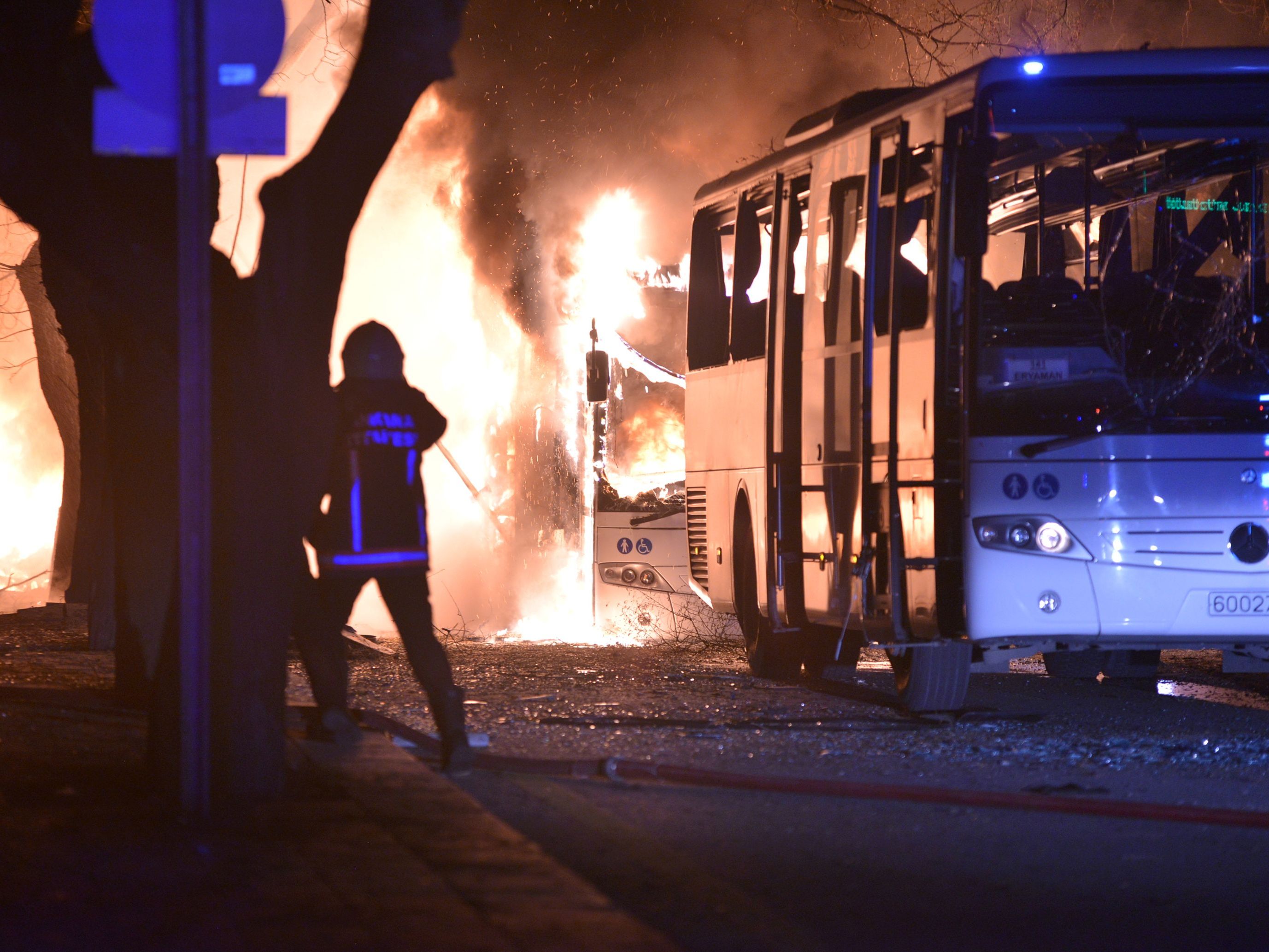 #Video shows multiple military buses were targeted with a huge explosion in #Ankara.. pic.twitter.com/w1iPeMViGT — Ergin Kocyildirim (@kocyildirim) 17. Februar 2016