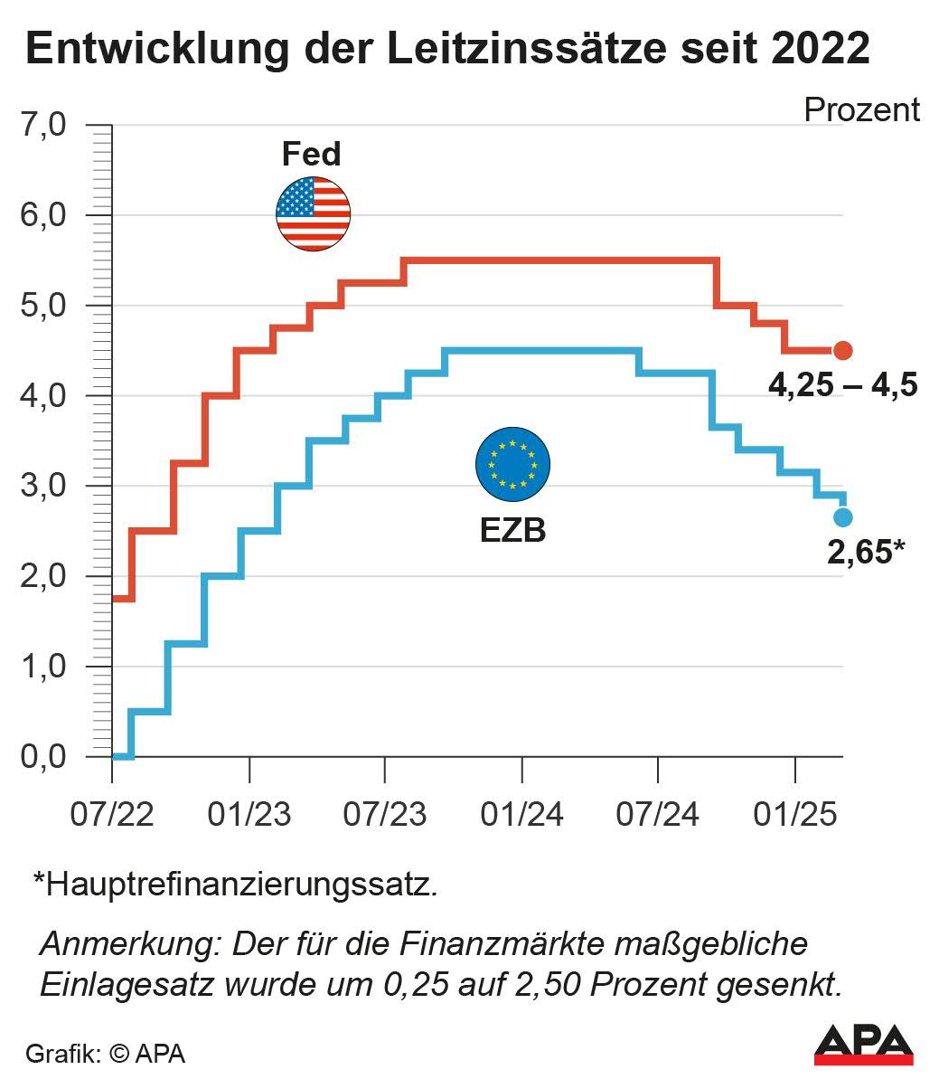 Die EZB setzte am Donnerstag ihren Lockerungskurs mit der sechsten Zinssenkung seit Mitte 2024 fort. Die Währungshüter beschlossen auf ihrer Zinssitzung in Frankfurt, den am Finanzmarkt maßgeblichen Einlagensatz um 0,25 Prozentpunkte auf 2,50 Prozent zu senken. Diesen Zins erhalten Finanzinstitute, wenn sie bei der Notenbank überschüssige Gelder parken. Er gilt als Leitzins im Euroraum. Die nächste EZB-Zinssitzung ist für den 16. und 17. April geplant.