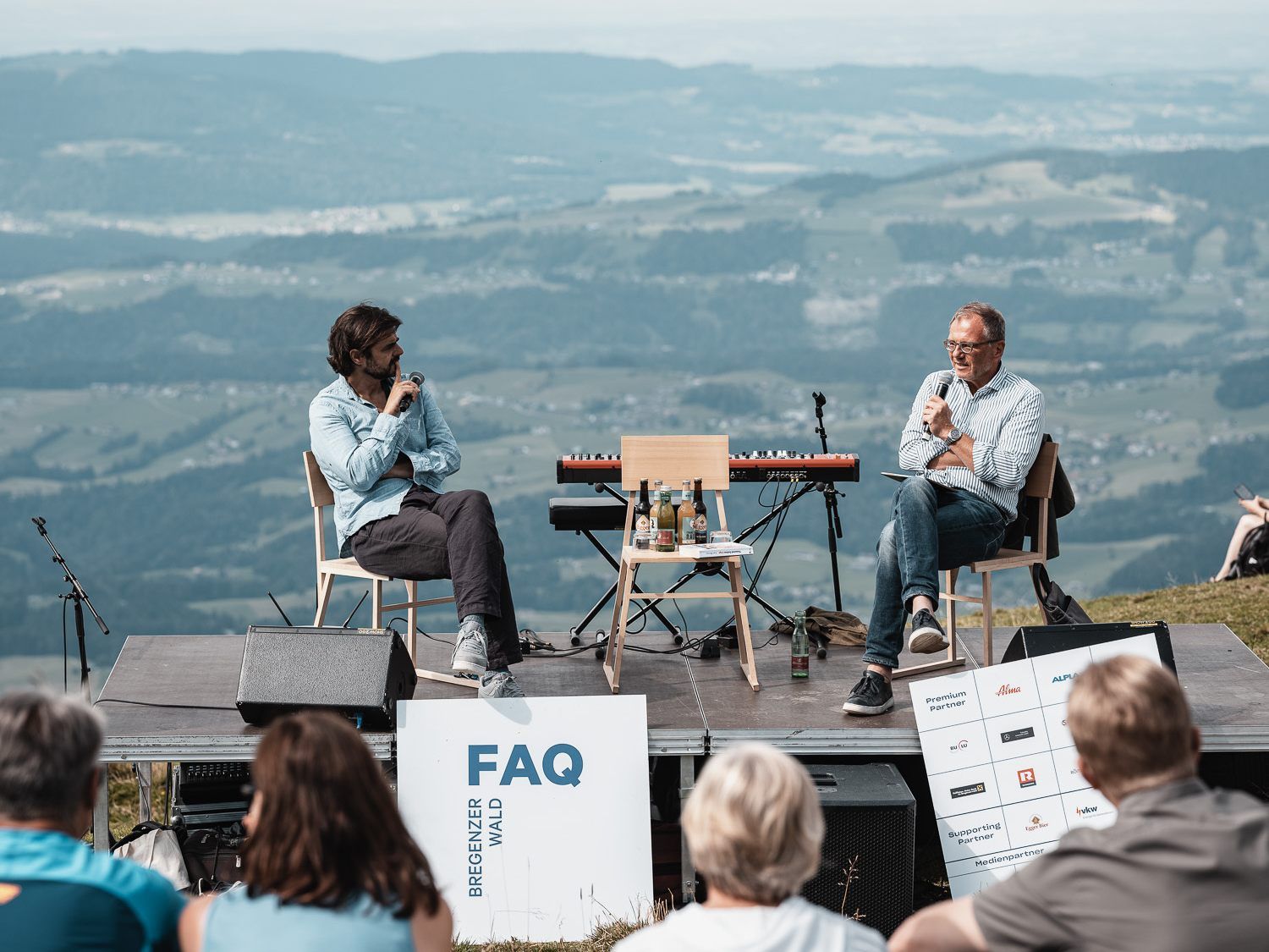 Gestärkt ging es weiter zur malerischen Kapelle Niederer. „Wer stellt hier die Fragen“? – natürlich Österreichs härtester Interviewer Armin Wolf! Und zwar niemandem geringeren als Relotius-Skandal-Reporter Juan Moreno. So ging es hoch gelegen und hochkarätig um die großen und kleinen Fragen des Lebens und die Tugenden des Journalismus. Wir waren hellauf begeistert – zumal Soul-Jungmusiker Lou Asril anschließend mit einem fabelhaften Überraschungskonzert erfreute.