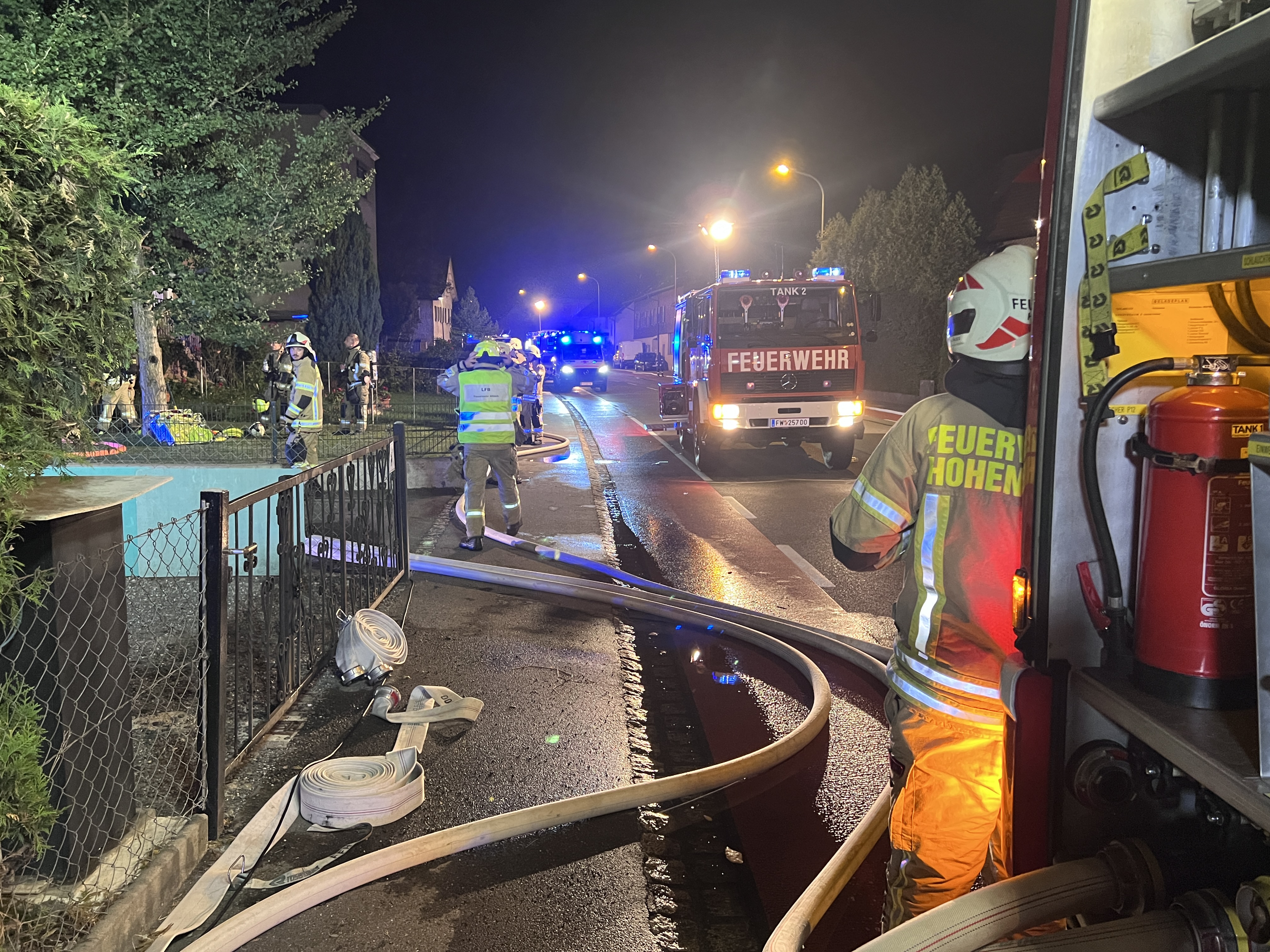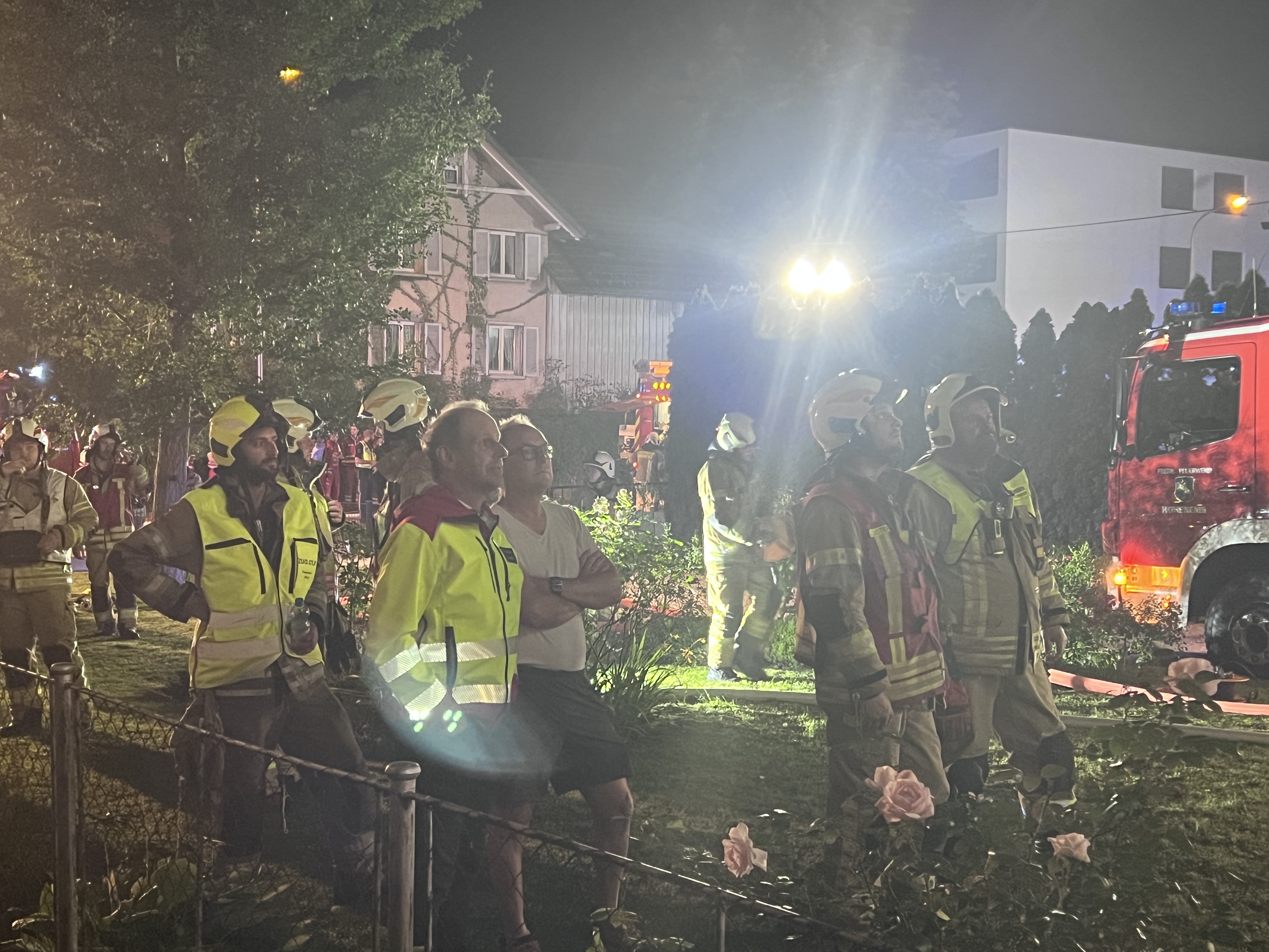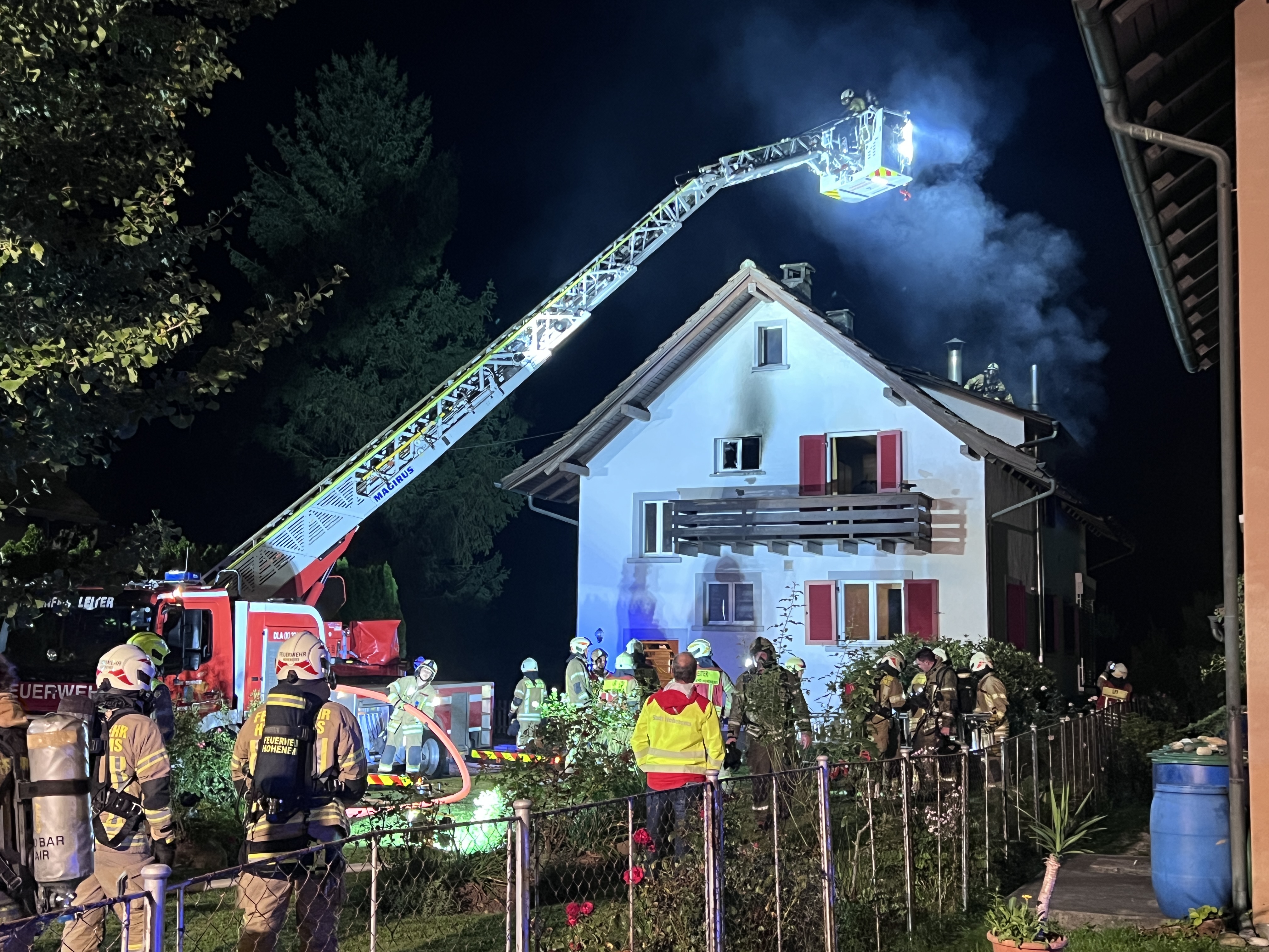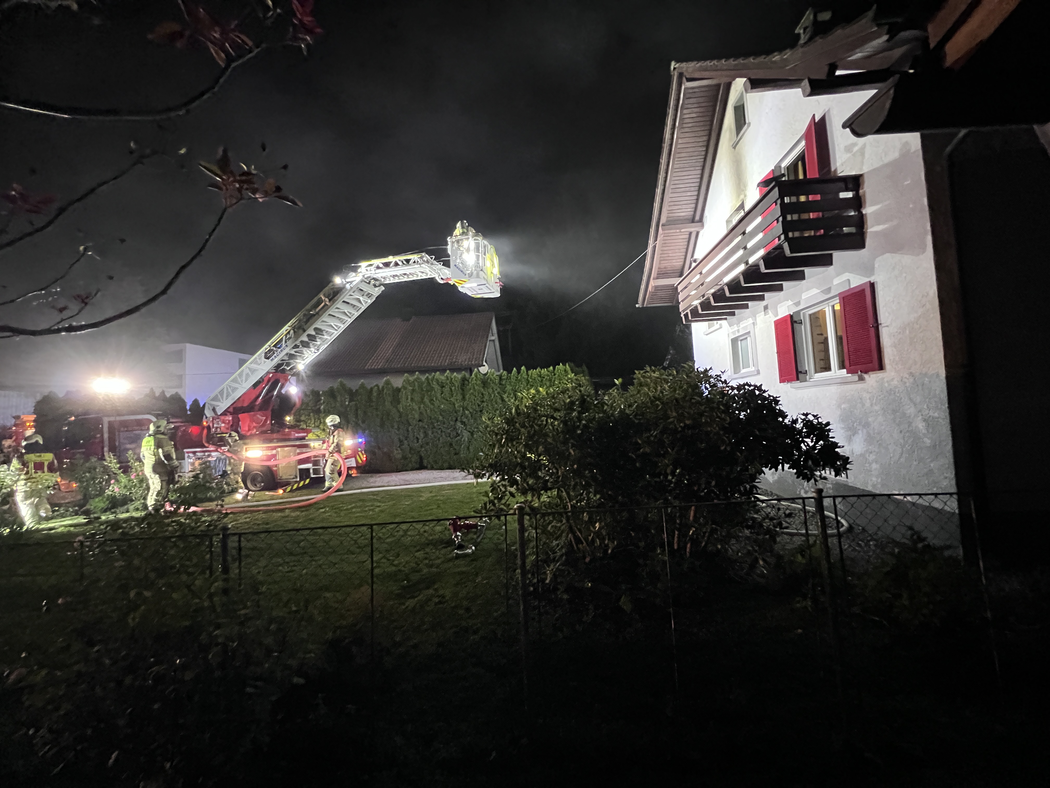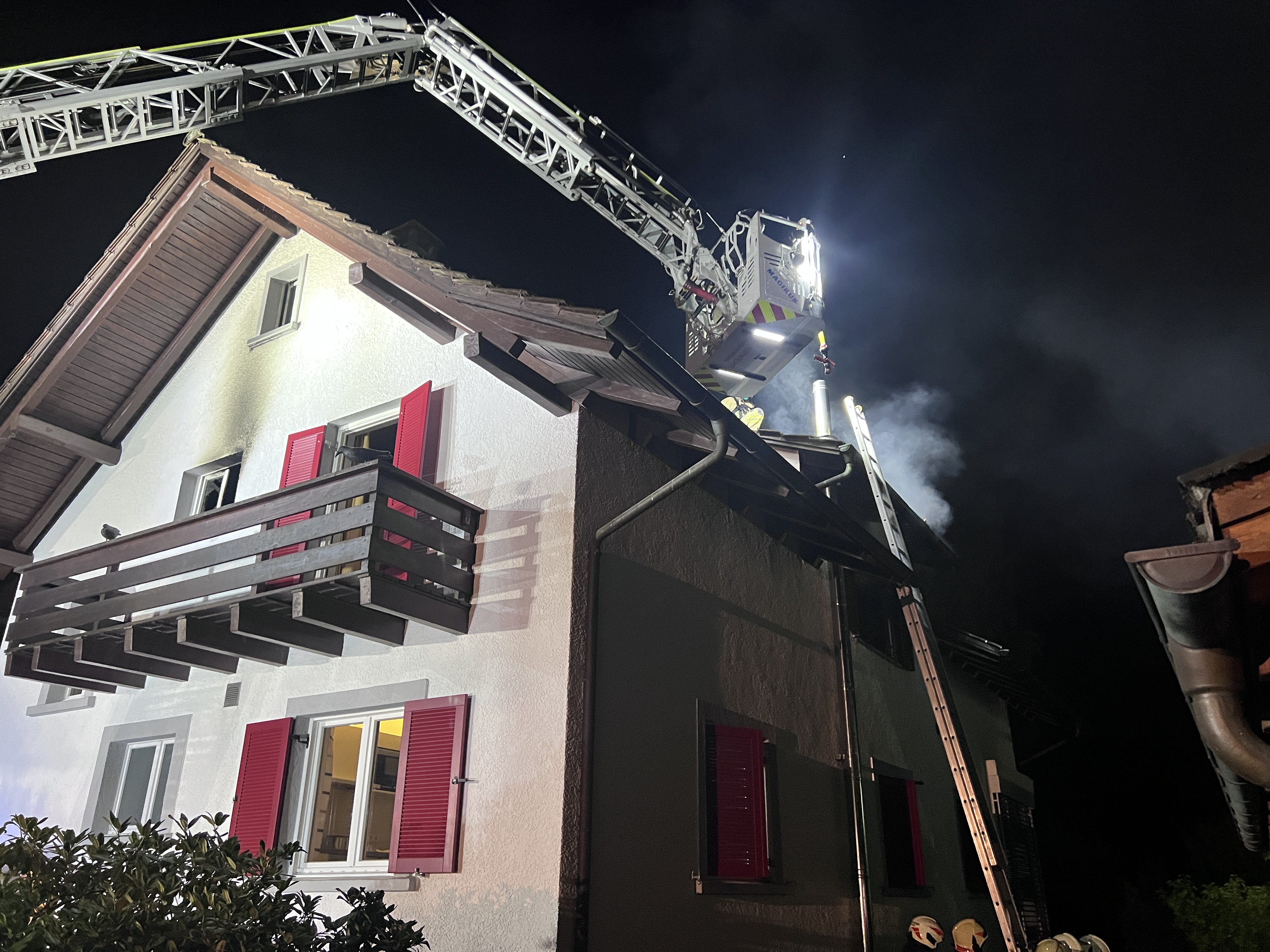 Die Feuerwehr wurde knapp vor 3 Uhr morgens zu einem Brand in einem Einfamilienhaus gerufen. In einem Zimmer im Obergeschoss war ein Feuer ausgebrochen. Als die Feuerwehr am Einsatzort ankam, schlugen bereits Flammen aus den Fenstern.