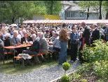Der Frühschoppen im Klostergarten wurde musikalisch umrahmt von der Stadtmusik Feldkirch, den Tostner Straßenmusikanten und den Alphornbläsern. In schon bewährter Manier sorgten sich die Mitglieder der Feldkircher Spältabürger um die durstigen und hungrigen Besucher. ORF Landesdirektor überreichte der Präsidentin des Freundeskreises der Vorarlberger Kapuziner LR Dr. Greti Schmid als Gastgeschenk DVDs mit dem ORF-Filmbeitrag über das Kloster gestaltet von Walter Fink. Klosterbruder Alt.BM Harald Ludescher hatte wiederum einen Flohmarkt aufgebaut und auch einen eigens gebrannten Klosterlikör gab es zu erwerben.