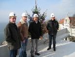 Roland Pircher, Geschäftsführer der projektart-Errichtungsgesellschaft, freute sich zusammen mit dem Lochauer Bürgermeister Xaver Sinz sowie den Architekten Theo Lang und Karl Schwärzler über den bis dato guten Baufortschritt. Die Bauarbeiten beim 45 Millionen Euro teuren Projekt laufen weiterhin auf Hochtouren. Für die Ausführung wurden ausschließlich Vorarlberger Firmen beauftragt. Wir haben bis heute 650 Pfähle, 300 Tonnen Baustahl und 10.000 Quadratmeter Schalungen verarbeitet. Und für den Aushub der Tiefgaragen wurden 22.000 Kubikmeter Erdreich bewegt. Material, das derzeit am Seeufer zwischengelagert und für die Aufschüttung der geplanten Flachuferzone Verwendung finden wird, rechnet Baumeister Hanspeter Lins.