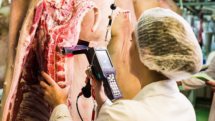 Ja, mit der pH-Wert-Messung. Nach der Schlachtung sind Geschwindigkeit und Ausmaß der pH-Wert-Absenkung entscheidend für die Fleischqualität. Ein zu niedriger pH-Wert 45 Minuten nach der Schlachtung deutet auf „Schrumpfschnitzelfleisch“ hin. Es ist blass, weich und wässrig. Dieser Fleischfehler trat vor allem durch Überzüchtung beim Schwein auf. Mittlerweile sind unsere Schweine sehr stressresistent und dieses mangelhafte Fleisch ist kaum mehr anzutreffen. Dennoch wird für das AMA-Gütesiegel jedes einzelne Schwein gemessen.