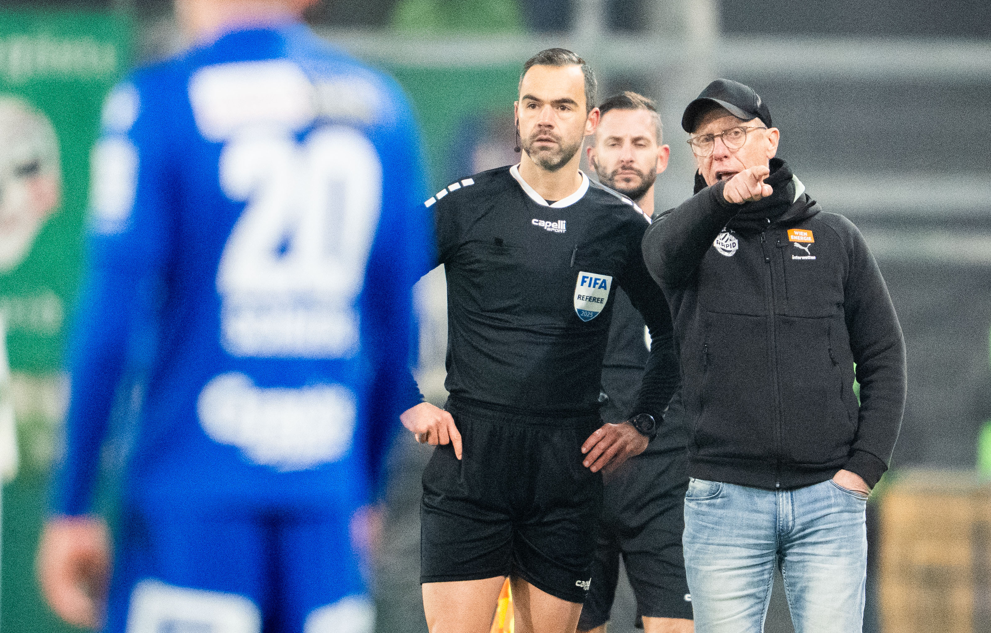 Both teams were stingy with scoring chances in the freezing temperatures, and there was little evidence of a quality difference between the second-placed team and the bottom team. The hosts had two really dangerous actions in the offense before the break. A header from Ange Ahoussou went wide (8th minute), and a shot from Nikolaus Wurmbrand was saved by goalkeeper Jakob Meierhofer (19th minute). On the other side, Paul Gartler only had to intervene with a shot from Jano (30th minute). Before the following corner, snowballs were thrown towards the corner taker, and after a short interruption, play continued.