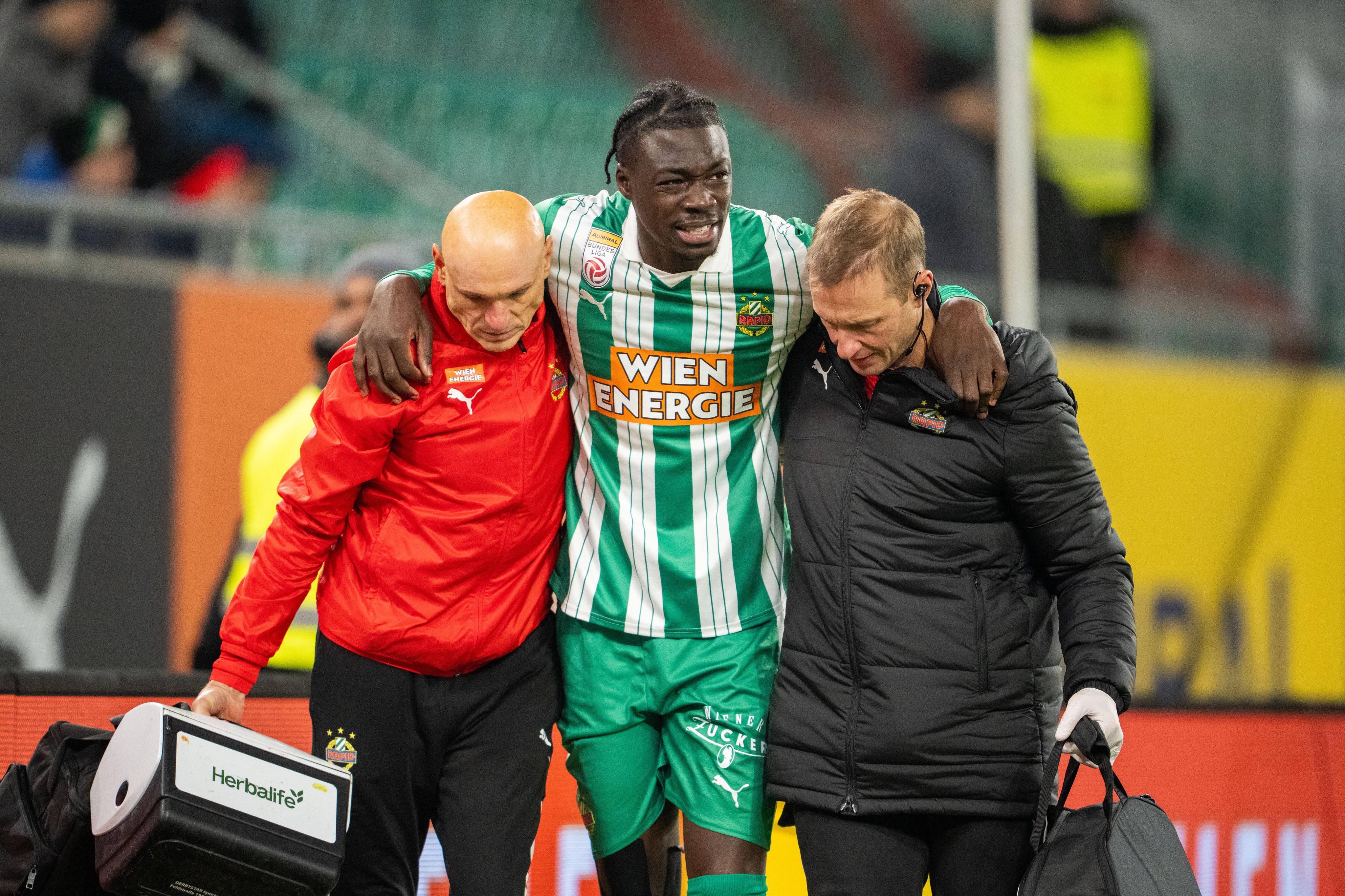 But not for long. Jano twisted his ankle without any external influence and had to be driven off the field by paramedics after about seven minutes of treatment on the field. The suspicion of a fracture of the right ankle seems to be confirmed. Rapid also lost a player to injury before the halftime break, with Serge-Philippe Raux-Yao suffering an ankle injury.