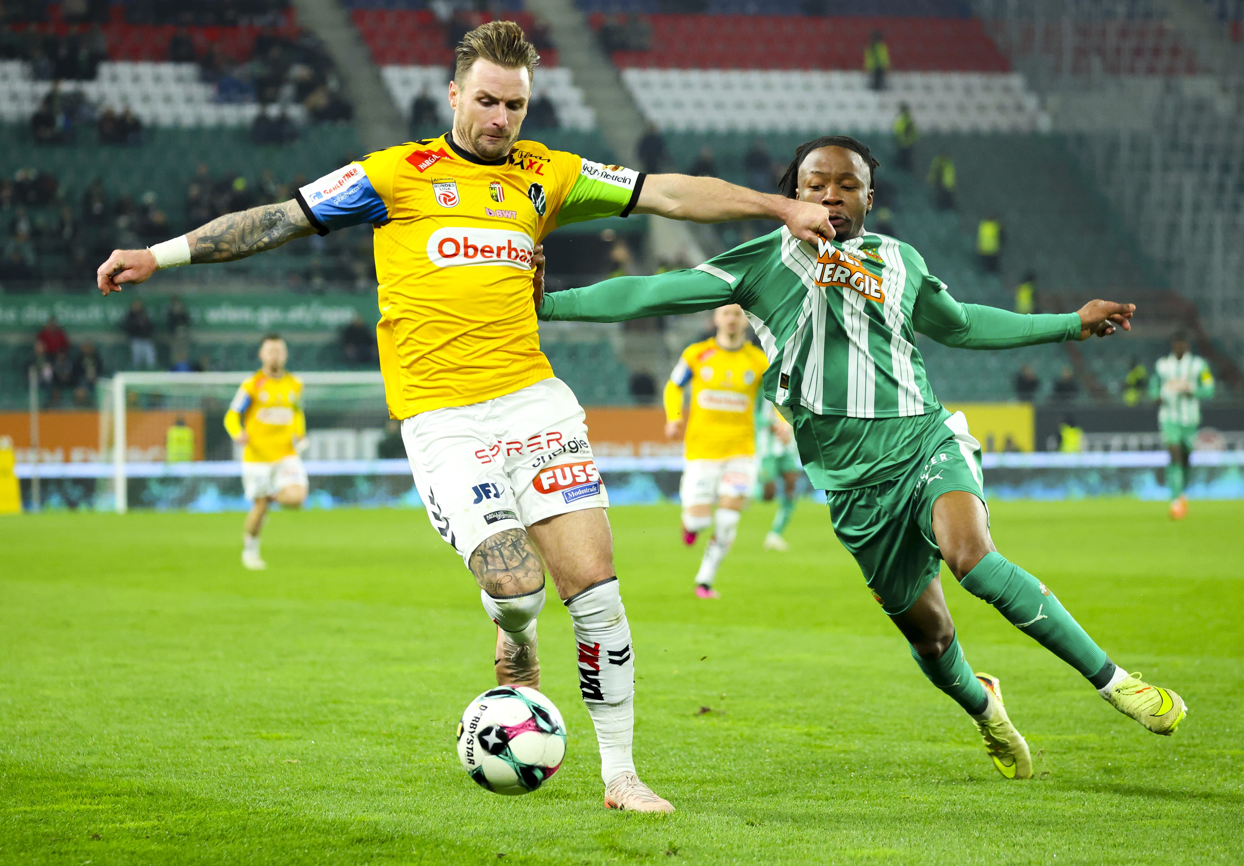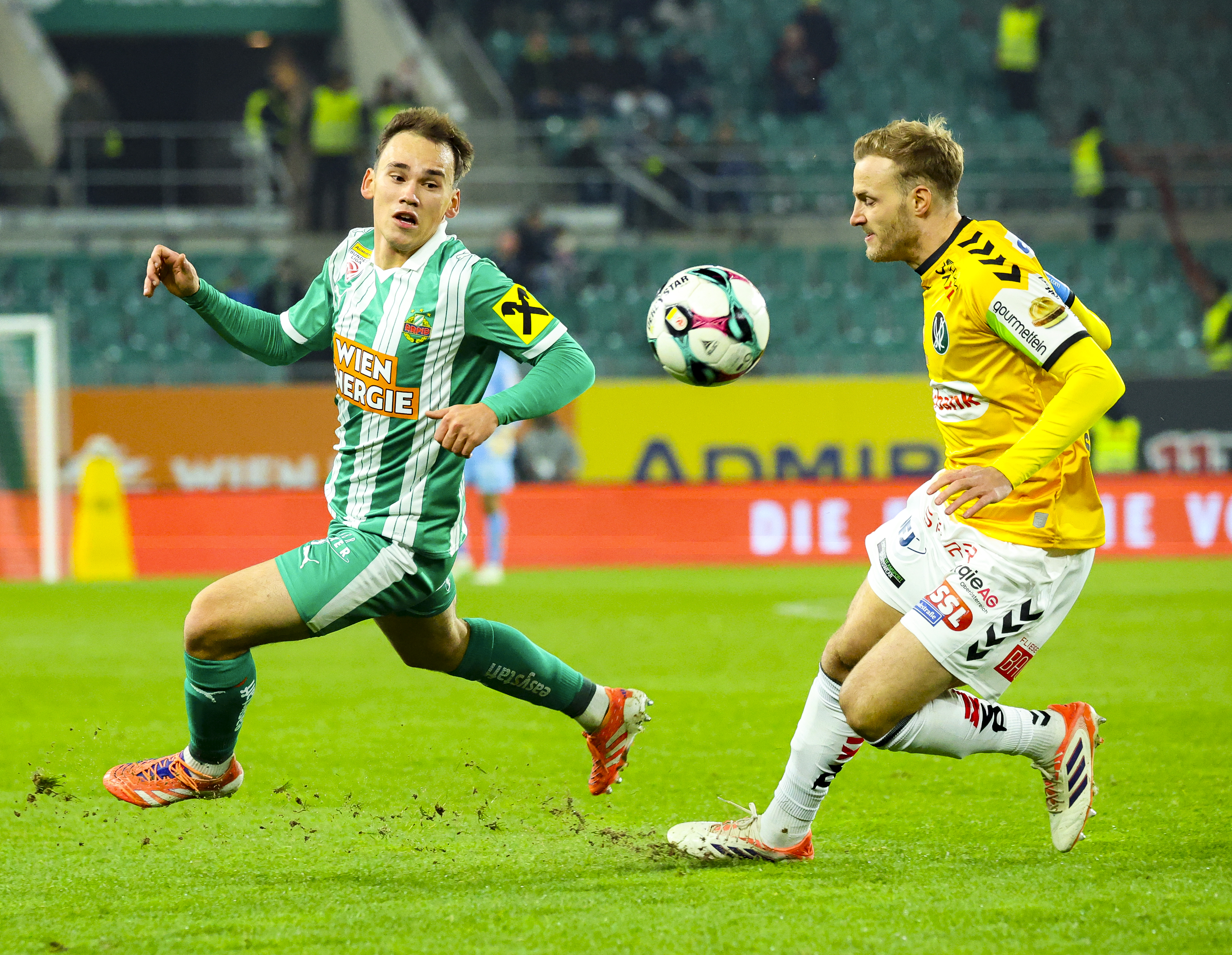 Rapid came out of the locker room with a lot of energy and had a great chance to take the lead again through Schaub. However, the direct shot went over the goal (49.), which would soon come back to haunt them. Instead of kicking the ball out, Nenad Cvetkovic tried to keep the ball in play. Substitute Joris Bogou reacted quickly and was fouled by Gartler during the shot, Pomer coolly converted the resulting penalty.