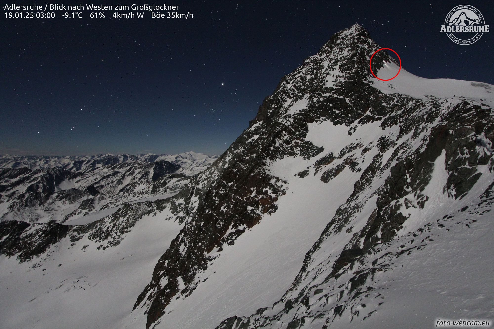 Auf einem Webcam-Bild von 3 Uhr nachts ist der Abstieg des 36-Jährigen sichtbar. (Quelle: foto-webcam.eu)