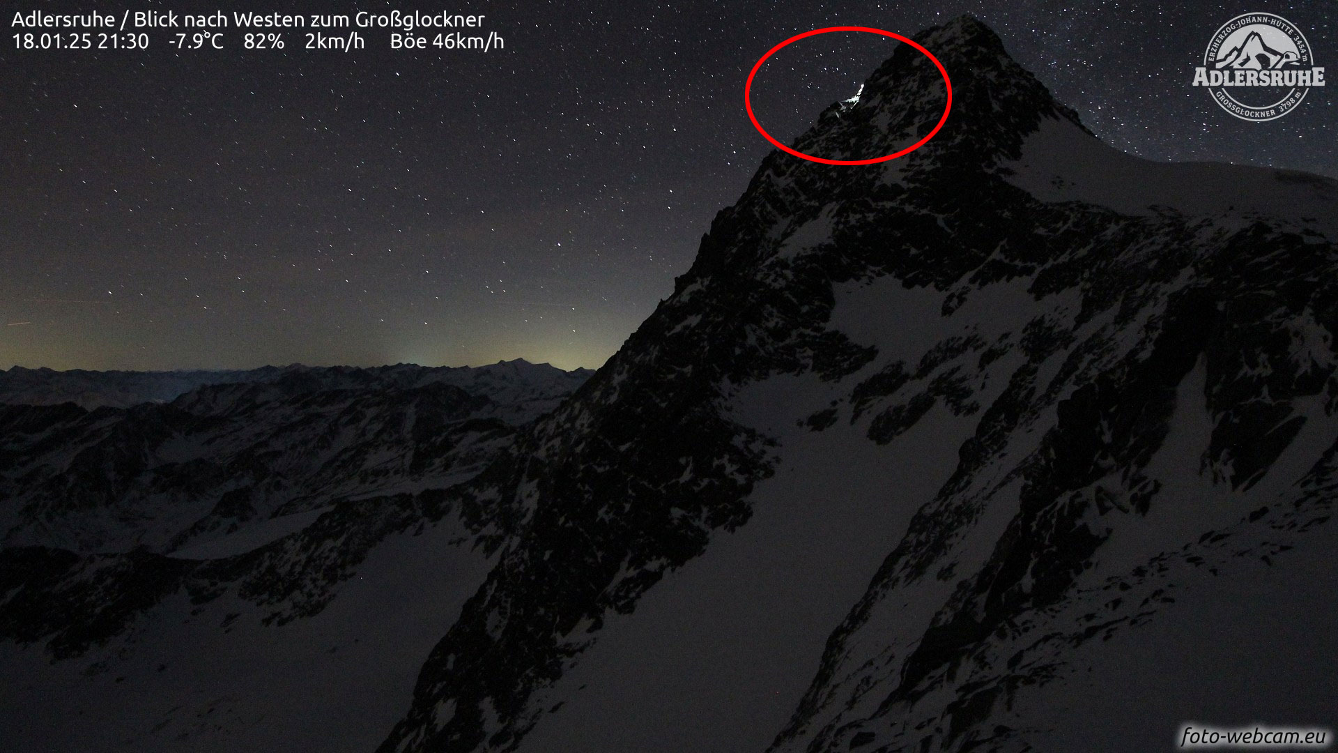 Die Lichter der beiden Bergsteiger waren gegen 21.30 Uhr auf der linken Flanke zu sehen. (Quelle: foto-webcam.eu)