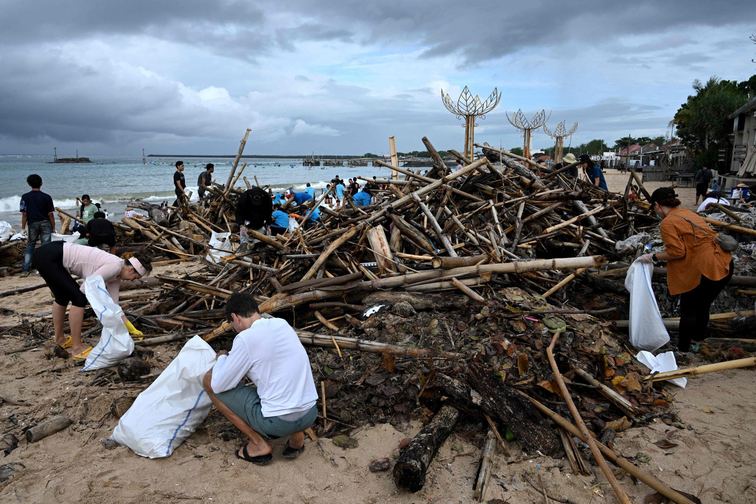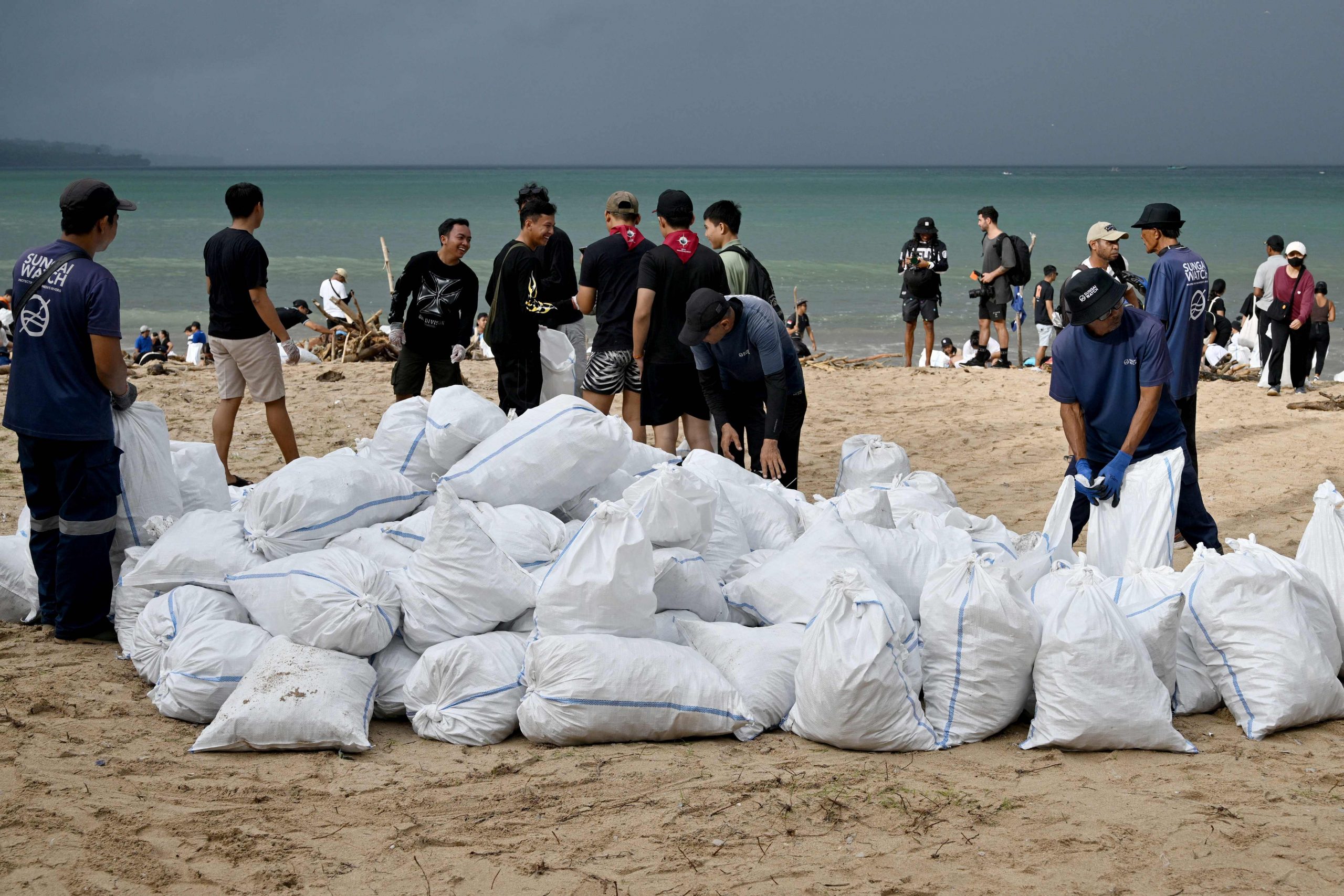 Nach der nach Schilderungen von Umweltschützern bisher "schlimmsten" Welle von Plastikmüll auf Bali haben hunderte Freiwillige tonnenweise Müll an den Stränden der indonesischen Urlaubsinsel eingesammelt.