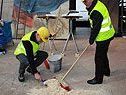 Der kaufmännische und der technische Direktor der Bregenzer Festspiele, Franz Salzmann und Gerd Alfons, standen bereit, um das Bühnenbild mit Besen, Schrubber und Eimer auf Vordermann zu bringen und ein wenig über die Herausforderungen der kommenden Monate und die 63. Bregenzer Festspiele ab 23. Juli 2008 zu erzählen.