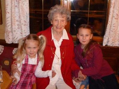 Sie zählt nun zu den ältesten Mitbewohnerinen ihrer Heimatgemeinde, mit der sie sich nach wie vor sehr verbunden fühlt. In diesem Sinne kam es auch, in der ihr schon von Kindheit an vertraut heimeligen Gaststube im Engel in Bezau, im Familien und Verwandtenkreis zu einer urgemütlichen Geburtstagsfeier mit einem umfangreichen Programm. Das wunderschöne Familienleben in der Jugendzeit im Kreise von zehn Kindern, umsorgt von guten Eltern, kam noch einmal in lebendigen Worten zum Ausdruck. Die Mutter Theresia, war neben der Arbeit für die Familie auch noch tatkräftige Engelwirtin. Der Vater Leopold als bedeutender Stickereifabrikant schaffte in den schweren 20er/30er Jahren für hunderte Kettenstich-Stickerinnen Heimarbeit und exportierte diese hochwertigen Erzeugnisse nach Amerika.