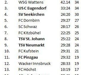 Ganze 120 Tage sind seit dem letzten Spieltag am 21. November vergangen. Nicht nur die Fans litten schon unter Entzugserscheinungen, auch die Teams brennen auf den Frühjahrsauftakt. In den verbleibenden 13 Spiele ist vor allem im Titelrennen zwischen der Austria und Wattens, aber auch im Abstiegskampf Spannung bis zum Schluss garantiert sein, wie der Blick auf die Tabelle zeigt: