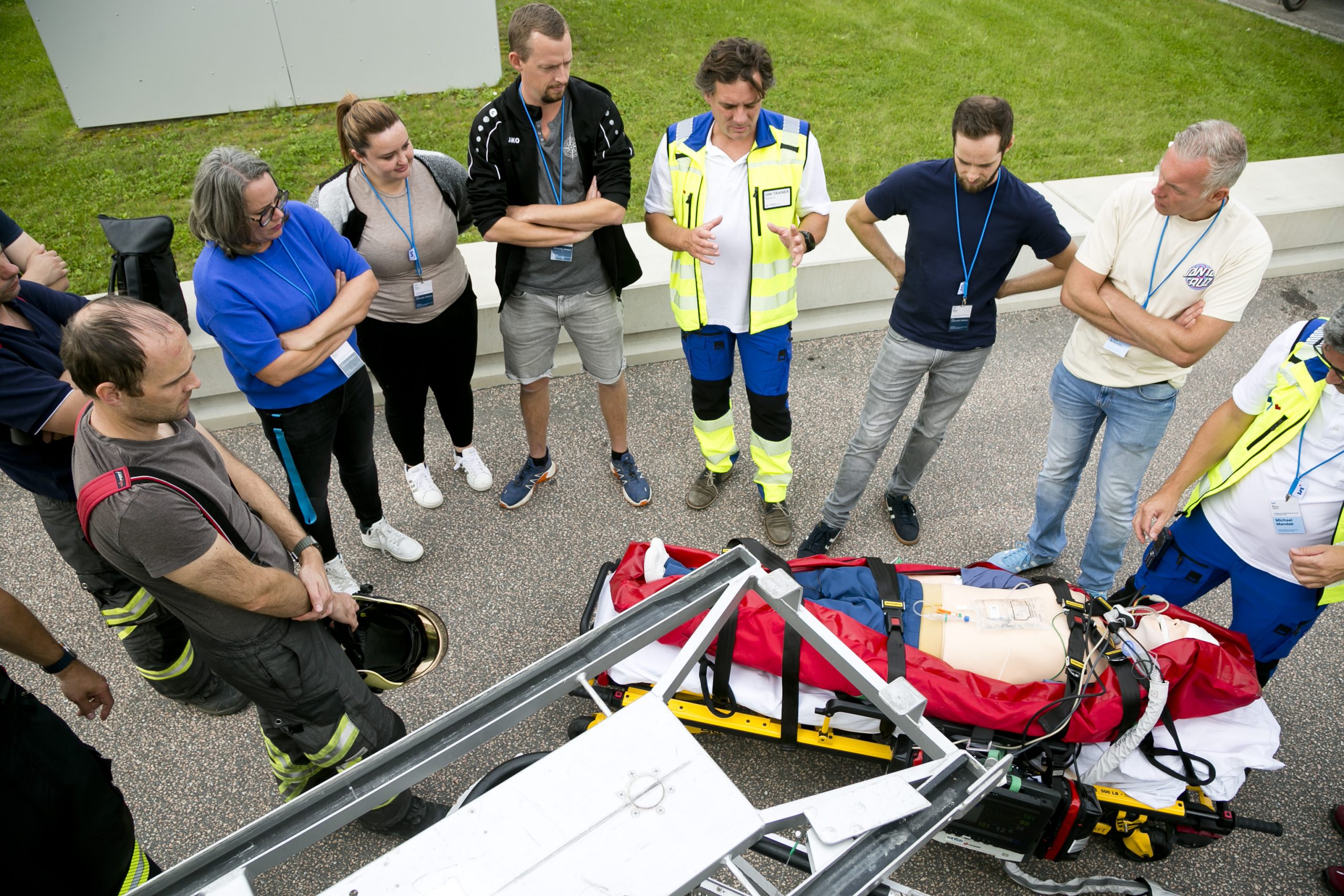 Alarmiert wird das Notarzteinsatzfahrzeug (NEF) mitsamt Team von der RFL (Rettungs- und Feuerwehrleitstelle), gegebenenfalls erfolgt eine Nachforderung durch Mitarbeiter:innen der Rettungsdienste. Die NEF-Teammitglieder verrichten in der einsatzfreien Zeit ihren Dienst im Krankenhaus. Steht ein Einsatz an, werden sie mittels Piepser verständigt und eilen umgehend weg von ihrem Arbeitsplatz zum NEF. Die Regelbesatzung eines NEF besteht aus einer/einem Notfallsanitäter:in des Roten Kreuzes, die/der in der Regel auch das Fahrzeug lenkt, einer diplomierten Pflegekraft mit Sonderausbildung Intensiv-/ Anästhesiepflege und einer/einem Notärzt:in. „In einer Notfallsituation ist die interprofessionelle Zusammenarbeit ganz besonders wichtig; die gemeinsame Fortbildung fördert den Austausch der Einsatzkräfte über Berufsgruppen hinweg“, erklärt Lucas Kuster.