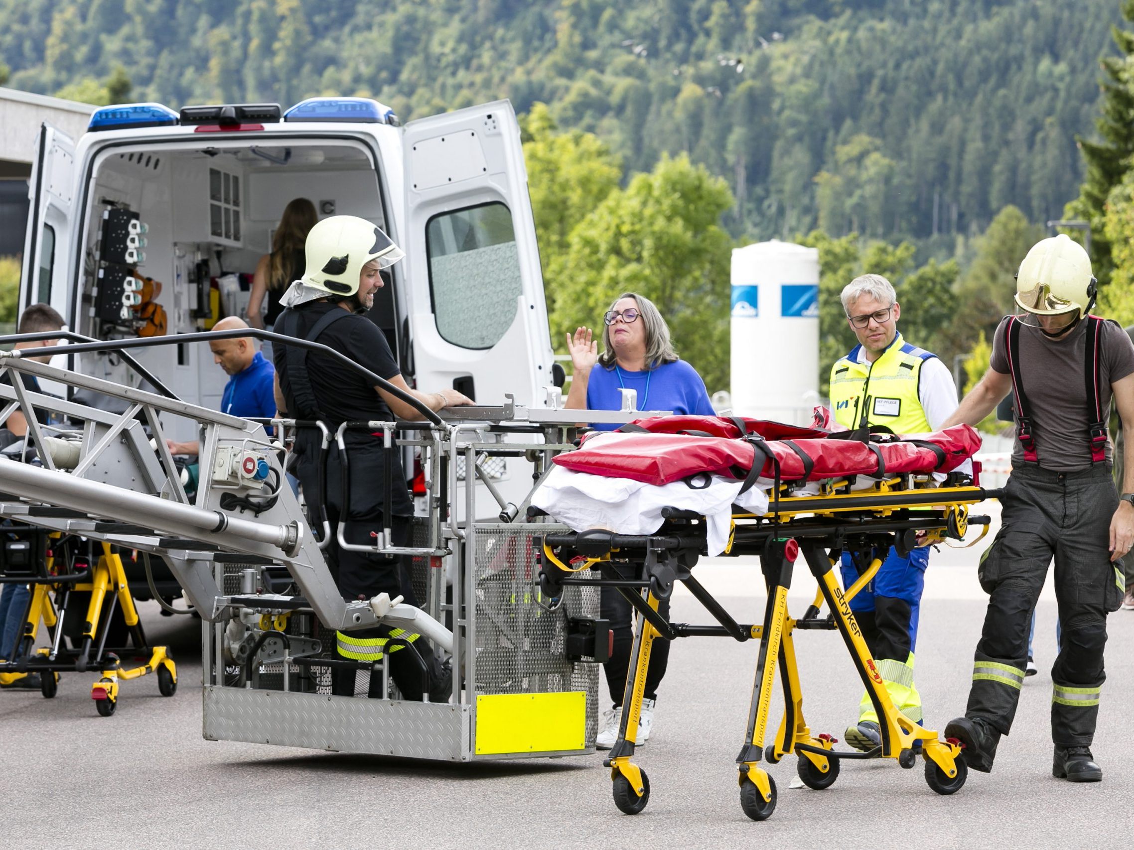 „Die Teilnehmenden konnten an fünf Praxisstationen reale Einsatzsituationen trainieren“, erklärt DGKP Lucas Kuster, Akad. Experte, Abteilung Anästhesie und Intensivmedizin am LKH Feldkirch. Neben seiner Anstellung als Anästhesiepfleger im OP und am NEF ist Lucas Kuster auch als Notfallsanitäter NKV (Notkompetenz Venenzugang und Infusion) im Einsatz und schon seit 22 Jahren ehrenamtlich beim Roten Kreuz im Rettungsdienst tätig. „Von der Wiederbelebung mit einem modernen Gerät über die Versorgung starker Blutungen bis hin zur nichtinvasiven Beatmung und der Bergung mit der Drehleiter konnten sie ihr Wissen aktiv anwenden und erweitern.“ In den Theorieeinheiten gaben erfahrene Referent:innen aus Medizin, Pflege und Rettungsdienst einen fundierten Überblick über Themen wie Großschadensereignisse, Sicherheit im Einsatz, erweiterte Notfallkompetenzen und den aktuellen Stand der Lehre im Roten Kreuz.