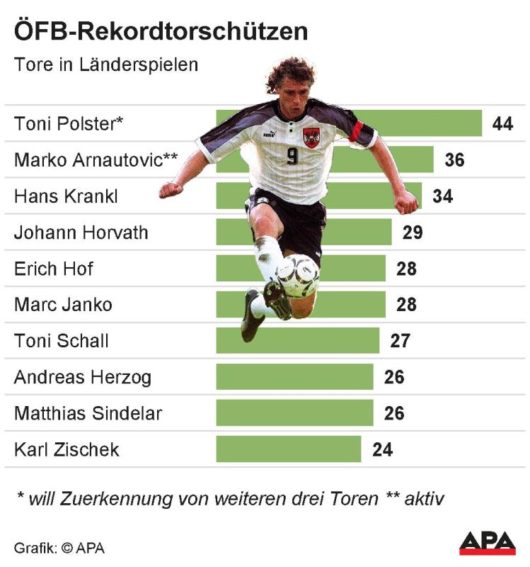Polster beteuerte in der Vergangenheit, dass sein Begehren nichts damit zu tun habe, dass ihm ÖFB-Star Marko Arnautovic mit 36 Teamtreffern gefährlich nahegerückt sei. Er fürchte nicht um seinen Torrekord. "Das ist einfach eine Ungerechtigkeit, die gen Himmel stinkt und die ich korrigiert haben möchte", hatte Polster im Vorjahr zur APA gesagt.