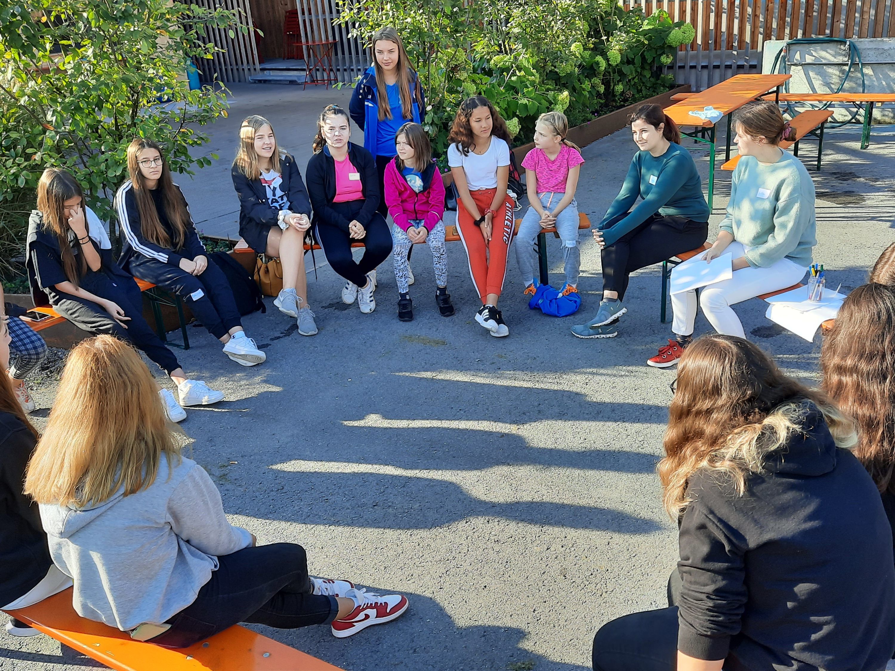 Ein weiterer wesentlicher und wichtiger Baustein dieser Veranstaltungsreihe war die Arbeit mit den Mädchen. Diese konnten in der oft männlich dominierten Sportart Fußball frei von Geschlechter-rollen ihre Erlebnisse in Bezug auf Gewalt, Ausgrenzungen und Mobbing reflektieren. Das Ziel war es, das Erlernte gestärkt nach außen zu zeigen. Wichtig war es uns, dass die Mädchen ihre Bedürfnisse und Talente selbstbewusst einfordern konnten, so Michale Bily, Leiterin des Mädchencafès.