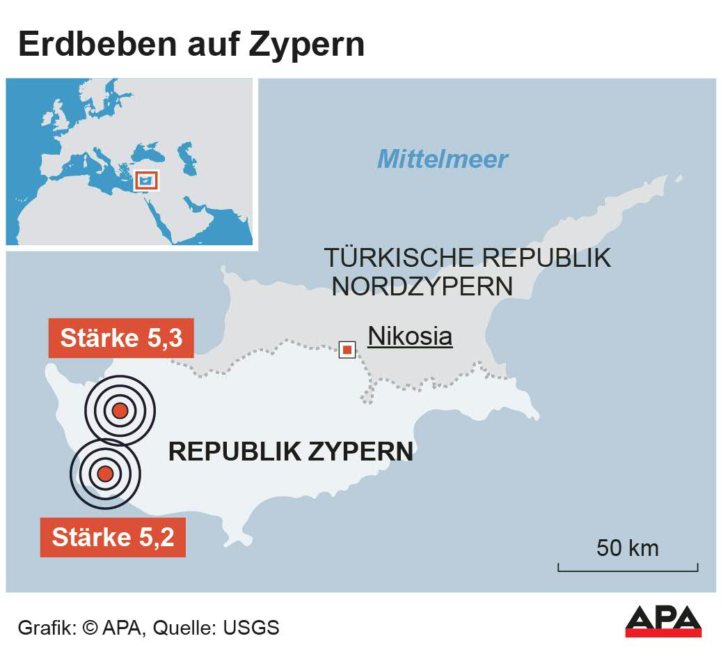 Die schweren Erschütterungen waren auf der gesamten Insel und bis hin zu den Küsten der Türkei, Israels und des Libanon zu spüren, berichteten zyprische Medien. Menschen liefen auf die Straße, Schulen wurden vorsorglich geräumt. Anschließend gab es zahlreiche kleine, kaum spürbare Erschütterungen. Das zweite starke Beben versetzte die Menschen erneut in Angst. Fachleute zeigten sich mit Prognosen zurückhaltend. Es habe bisher keine nennenswerten Schäden gegeben, sagte Zivilschutz-Sprecher Panagiotis Liatsidis dem Sender Alpha. Seismologen betonten in Interviews von zyprischen Medien, es sei unklar, ob es sich bei dem starken Beben am Vormittag bereits um das Hauptbeben gehandelt habe. Man müsse bis zu 48 Stunden abwarten.