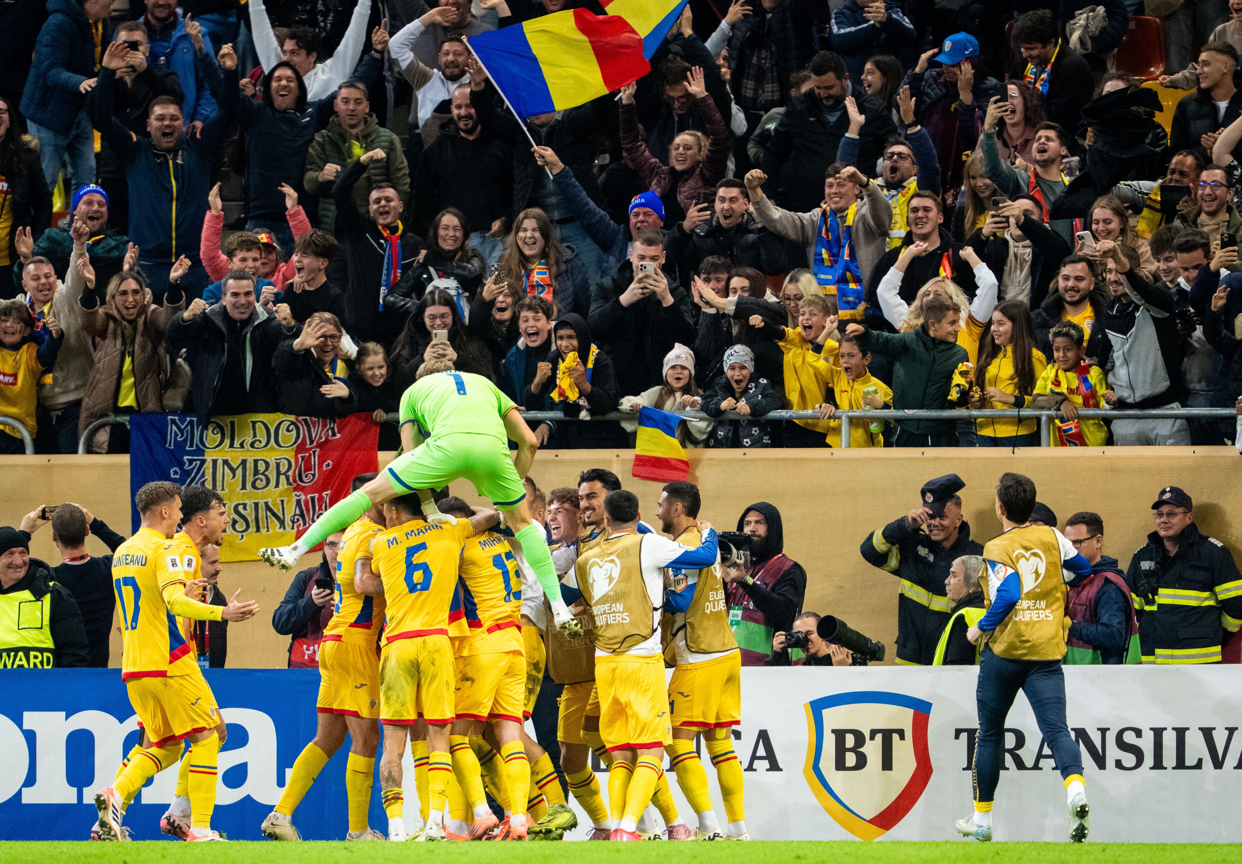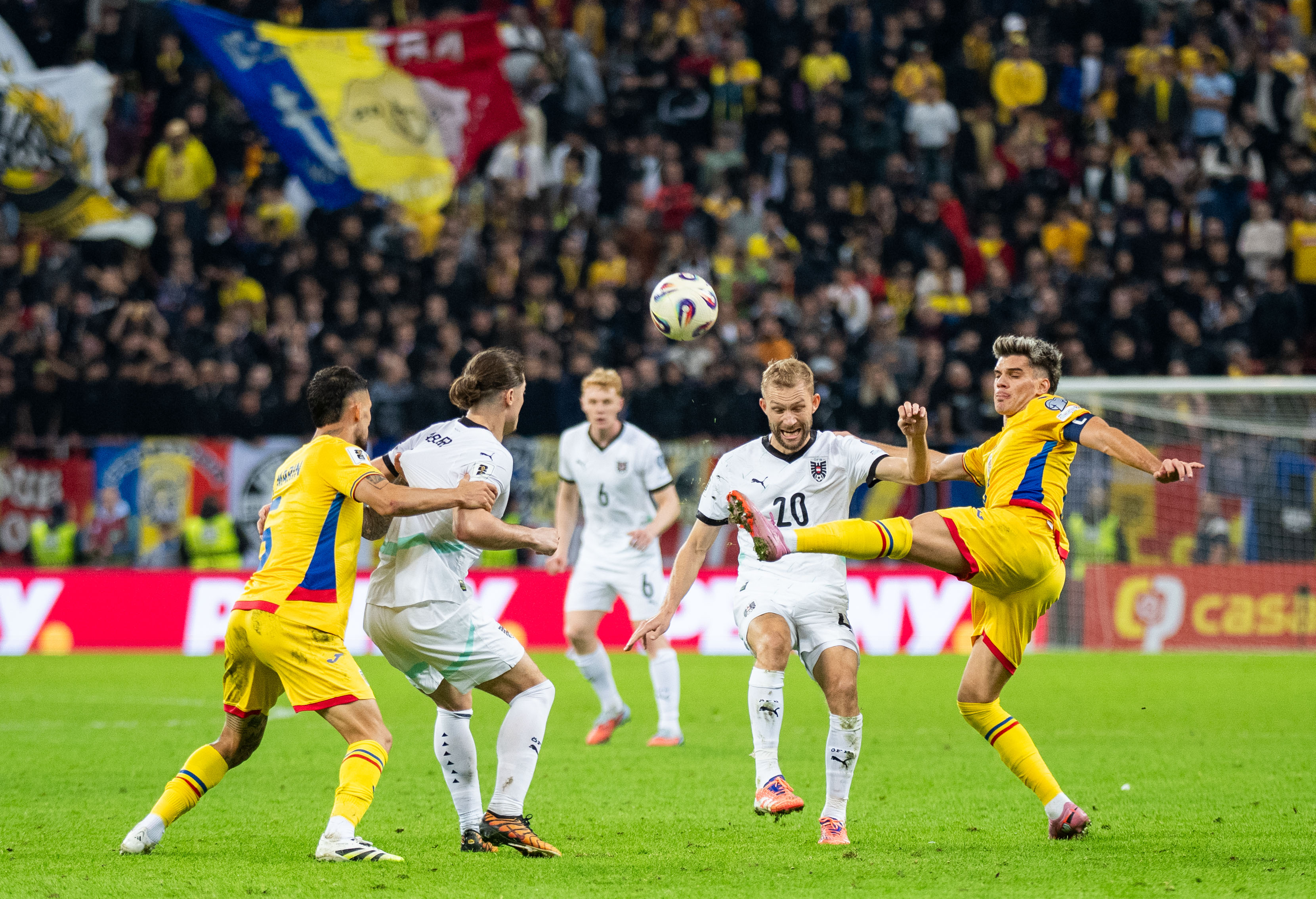 Unter den 39.581 Zuschauerinnen und Zuschauern in der bei weitem nicht vollen Arena Nationala waren mehr als 1.000 ÖFB-Fans und Österreichs Außenministerin Beate Meinl-Reisinger. Sie sahen eine kampfbetonte Partie, in der die Österreicher vor der Pause zwar etwas mehr Ballbesitz, die Rumänen aber die gefährlicheren Szenen hatten. Valentin Mihaila setzte einen Seitfallzieher ebenso links neben das Tor (7.) wie Andrei Ratiu einen Distanzschuss (15.).
