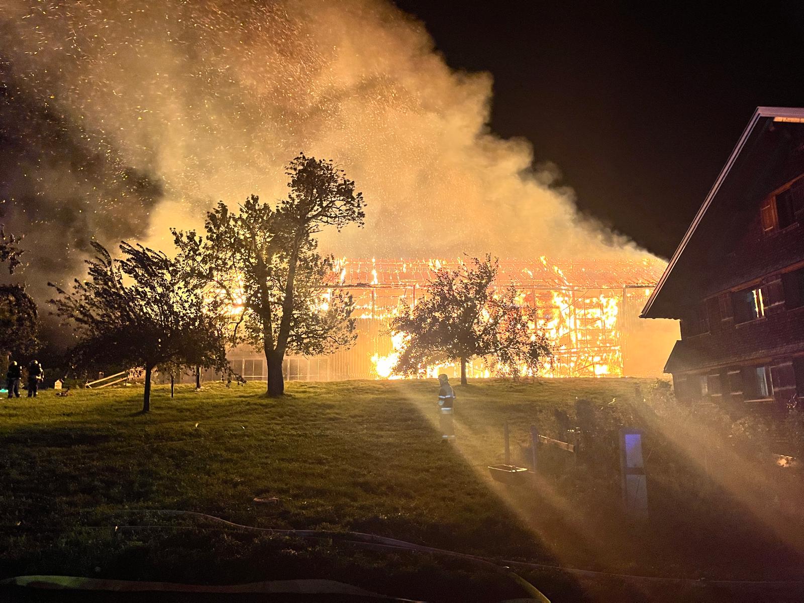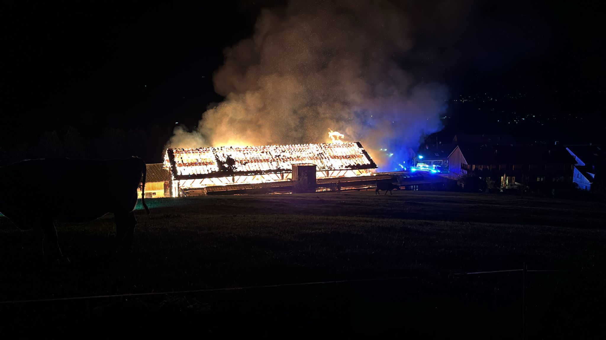 Zusätzlich konnten auch alle landwirtschaftlichen Geräte rechtzeitig aus dem brennenden Stall gefahren werden.
